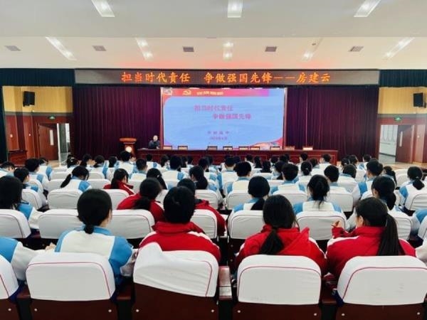 4月9日下午,开封高中副校长房建云在报告厅为高三年级青年学生业余党校学员做题为《担当时代责任,争做强国先锋》专题讲座。房建云从时代的呼唤、正确的认识和积极的行动三个方面进行讲授,通过邱少云、雷锋、王进喜、焦裕禄、孔繁森等记忆中的共产党员的事迹,再到朱镕基、索南达杰、蒋彦永、刘恩和、吴天祥等新时代涌现出的一批批优秀共产党员。他讲到,青年是国家的希望,民族的未来,青年强,则国强。要有积极的行动,要有为