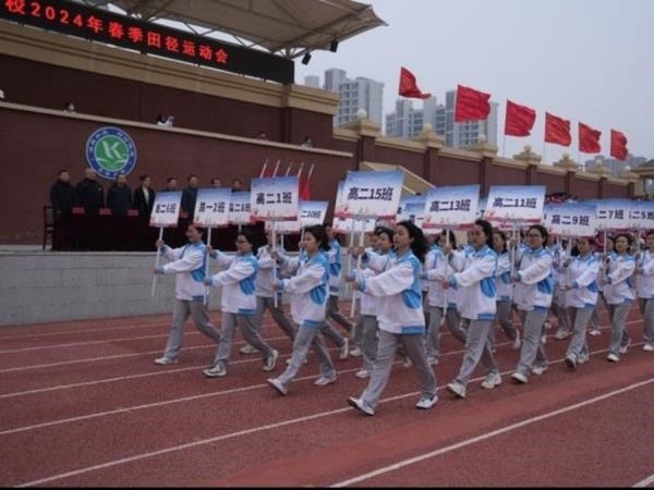 为鼓励学生走向操场、走进大自然、走到阳光下。促进全体学生积极参加体育锻炼,加强学生的集体荣誉感。4月2日上午八点,开封高中西校区2024年春季田径运动会在万众期待中拉开了帷幕。本次开场大秀由学生团体拉丁舞和健美操组成。她们的动作协调一致,充满力量与美感,散发出无限的激情与魅力,赢得观众阵阵掌声与喝彩。一面18米*12米巨幅国旗由16名同学高举过头顶,并将这面鲜艳的五星红旗缓缓向前移动……巨幅国旗的
