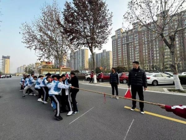 为丰富校园文体生活,增强学生团队协作意识,近日,西校区28届隆重举办男子拔河与女子跳长绳比赛。同学们以饱满的热情、昂扬的斗志,在赛场上奏响了青春的奋进乐章。比赛现场气氛热烈非凡。拔河赛场内,各班参赛队员紧握长绳,双脚蹬地,身体后倾,齐心协力往后拉。场外啦啦队的呐喊声、助威声此起彼伏,响彻校园,每一声加油都化作队员们奋勇拼搏的动力。随着裁判哨声响起,双方队员卯足干劲、寸步不让,绳索中间的红绸带在中线