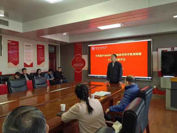 为深化教育教学改革,推动科研与教学深度融合,助力教师专业化成长,3月24日,开封高中在东校区举办“河南省教育科学‘十五五’规划2026年度一般课题”申报展评活动。学校邀请督导室专家、各学科教研组长和教科研骨干组成评审委员会,负责本次课题展评活动的评审工作。评审会议由师训处主任毛广文主持。会议伊始,开封高中副校长张志强结合文件精神对本次课题申报展评活动提出要求。他指出,课题申报与展评既是教育科研活动