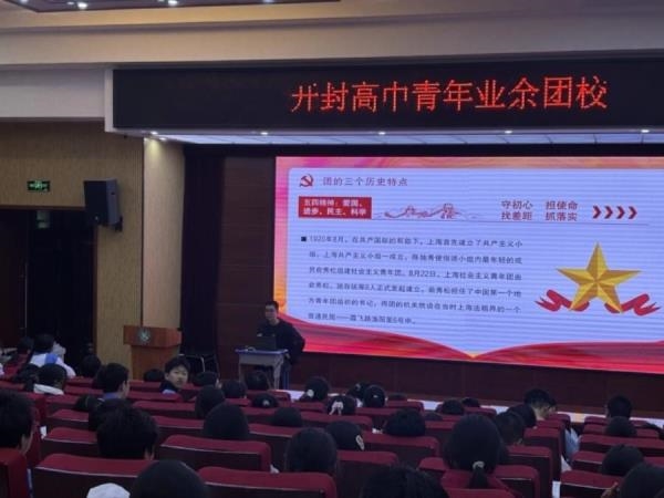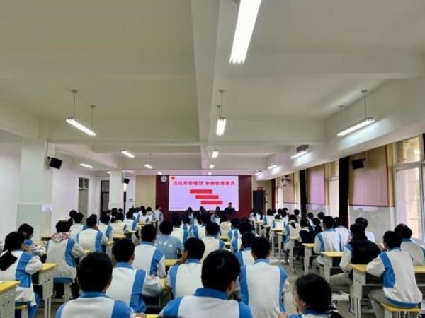 2026年4月9日下午,我校2027届团总支书记熊海轮开展以“点亮青春理想争做优秀团员”为主题的专题团课,2027届、2028届入团积极分子全员参与培训。熊海轮围绕认识共青团、坚定理想信念、争做优秀时代青年三大板块展开讲解。他详细介绍了团旗、团徽、团歌的内涵与规范,阐释其象征意义与精神内涵,让同学们对共青团有了全面、深刻的认知。他强调,青年入团不仅是一份荣誉,更是一份责任。新时代青年要坚定理想信念