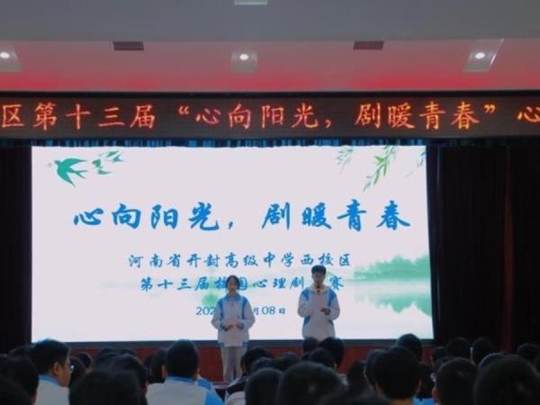 暮春四月,暖意融融。4 月 8 日下午,开封高中西校区报告厅内掌声与欢笑交织,第十三届 “心向阳光,剧暖青春” 校园心理剧大赛西校区分赛开幕。校长马分产、校务委员娄渊中及相关领导和老师出席现场,与同学们共同赴约这场心灵与艺术碰撞的青春盛会。赛前,校务委员娄渊中登台致辞。他提到,校园心理剧大赛作为我校心理健康教育的特色品牌,已经成功举行了十二届,始终是同学们探索自我、倾诉心声的重要载体。他寄语参赛选