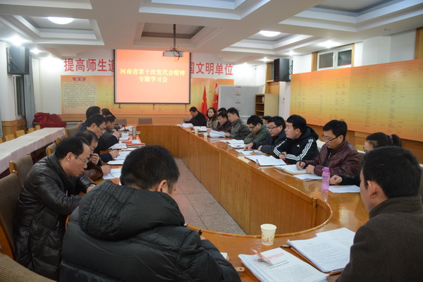 为了更好的贯彻落实河南省第十次党代会精神,11月22日下午,我校在东校区三楼会议室组织召开了河南省第十次党代会精神专题学习会,学校领导班子、中层正职及各党支部委员参会,我校省党代会代表耿振勇同志作重要发言。