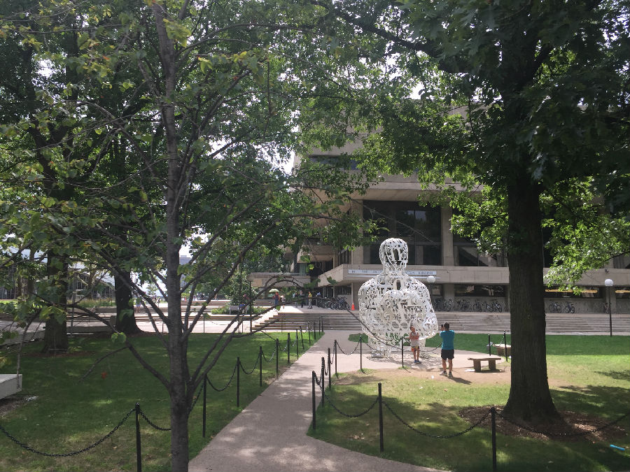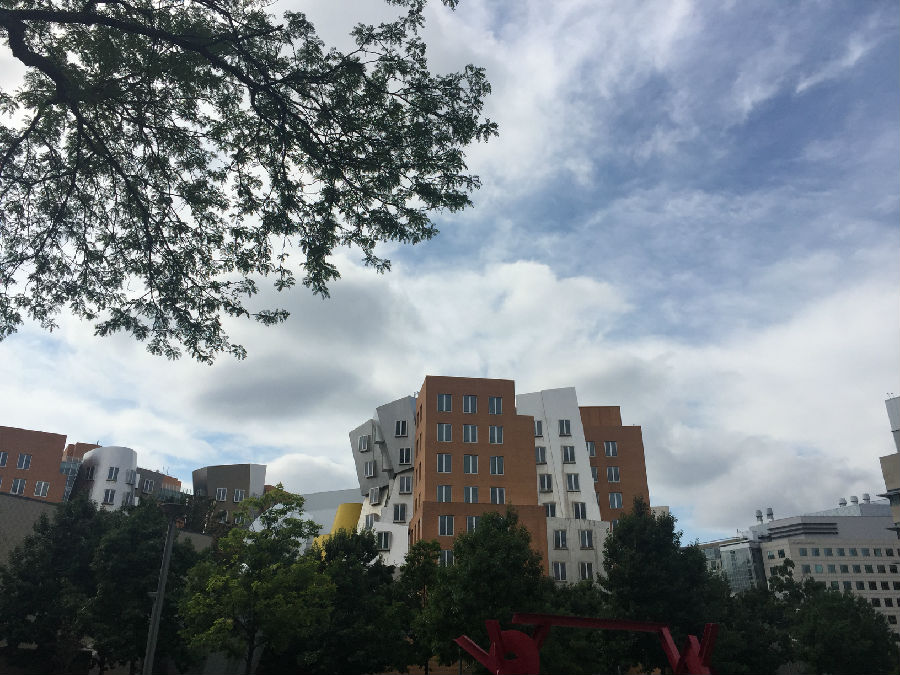 一下车,等待我们的是一个阳光有趣的大男孩,虽身着随意但自信真诚的笑容让我们无法抗拒,他就是麻省理工刚毕业拥有MIT计算机和金融两个学位的大四生,他名叫朱利安。他告诉我们沿贯穿波士顿南北的麻省大街(Massachusetts Avenue)向查尔斯河上的哈佛桥方向行进,抵达北侧桥头,就会来到全世界理工科的学生向往之地——麻省大街77号。和哈佛大学一样,麻省理工学院没有围墙,没有校门,秀丽的查尔斯河在剑桥城和波士顿城之间蜿蜒转了一个100度的大弯,偏心而优雅地将世界两大名校揽入剑桥城怀中。