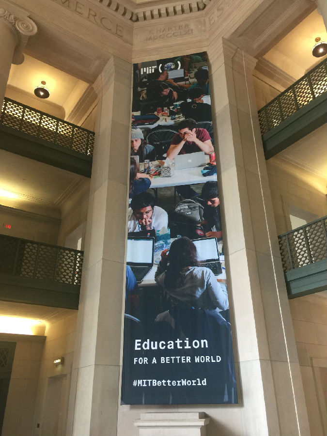 在深驻哈佛并体验哈佛课堂之后,开封高中赴美13人的心情是激动的。在波士顿,这里有另一所与哈佛齐名的顶尖学府,此行必然不会错过,那就是麻省理工学院。麻省理工学院(Massachusetts Institute of Technology),简称麻省理工(MIT),坐落于美国马萨诸塞州剑桥市(大波士顿地区),是世界著名私立研究型大学。麻省理工学院创立于1861年,在第二次世界大战后,麻省理工学院借由美国国防科技研究需要而迅速崛起;在二战和冷战期间,麻省理工学院的研究人员对计算机、雷达以及惯性导航系统等科技发展作出了重要贡献。麻省理工学院素以顶尖的工程学和计算机科学而著名,拥有林肯实验室(MIT Lincoln Lab)和媒体实验室(MIT Media Lab),位列2016-17年世界大学学术排名(ARWU)工程学世界第一、计算机科学第二,与斯坦福大学、加州大学伯克利分校一同被称为工程科技界的学术领袖。截止至2016年,麻省理工学院的校友、教职工及研究人员中,共产生了85位诺贝尔奖得主(世界第6) 、6位菲尔兹奖得主(世界第10)以及21位图灵奖得主(世界第2)。2016-17年度,MIT位列QS世界大学排名世界第一、USNEWS世界大学排名(US News)世界第二、世界大学学术排名(ARWU)世界第五、泰晤士高等教育世界大学排名世界第五。2017年6月,《泰晤士高等教育》公布世界大学声誉排名,麻省理工学院排名世界第二、仅次于哈佛大学。