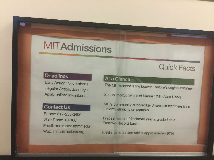 7号楼对面,麻省大道旁有一个用数字和字母连起来的的塑像。MIT媒体实验室的莫斯教授说:“以前我们想到技术,总是在谈人工智能,怎么让机器变得更聪明,让他们像人一样思考。我认为这是一个错误的方向。未来我们应该做的是,怎么利用技术让人变得更聪明,更强大,更独立。”这个用数字和字母构成的思考者是否意喻更聪明、更强大、更独立的人类自己呢?MIT的本科录取率仅占申请人的10%,被公认是美国最难读的本科,本科生因学习压力过大而自杀的人数在上个世纪相当长的时间里曾高居全美大学榜首。不过,学生入学后学习的刻苦程度也属罕见,MIT学生在入学后四年内的毕业率是92%,全美排名居前。在美国东北部漫长的冬天里,在繁重的学业压力下,一些学生情绪陷入低潮,对学校也是爱恨交加,“我恨这个该死的地方”,据说这是MIT学生们最常说的一句话。从任何方面来说,MIT都是世界上一所无与伦比的高等学府,其最突出的标志是造就了一批声名盖世的科学家。在MIT,传统的教育方法是没有市场的,在教室实验室的过道墙上贴满了各类广告和招贴画,我们看到MIT学生性格外向开放,思维敏捷活跃的一面,相信在这里,每个想象都有希望放飞!