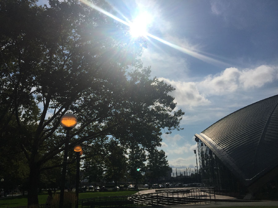 位于校园中央正对着π字形的最高楼就是计算机学院楼了,据朱利安说,这里每逢重要节日,每个窗口的LED灯就会打开,整个楼像极了俄罗斯方块一样科技感十足。更有意思的是,万圣节当天,这里的学生会把南瓜灯用液氮冻住,从顶楼向下扔南瓜灯,所有人欢喜于南瓜灯落地瞬间摔碎的脆响声。