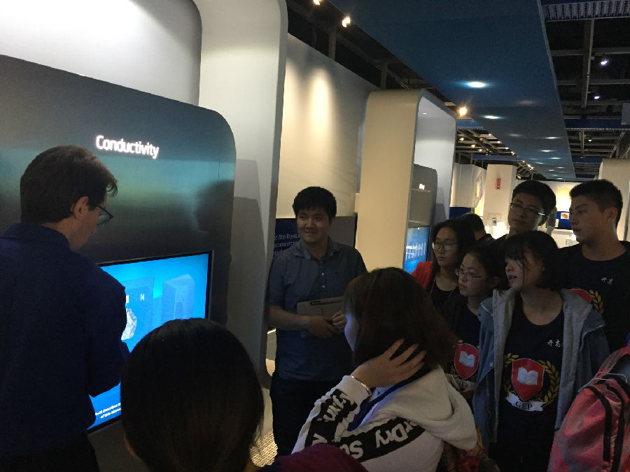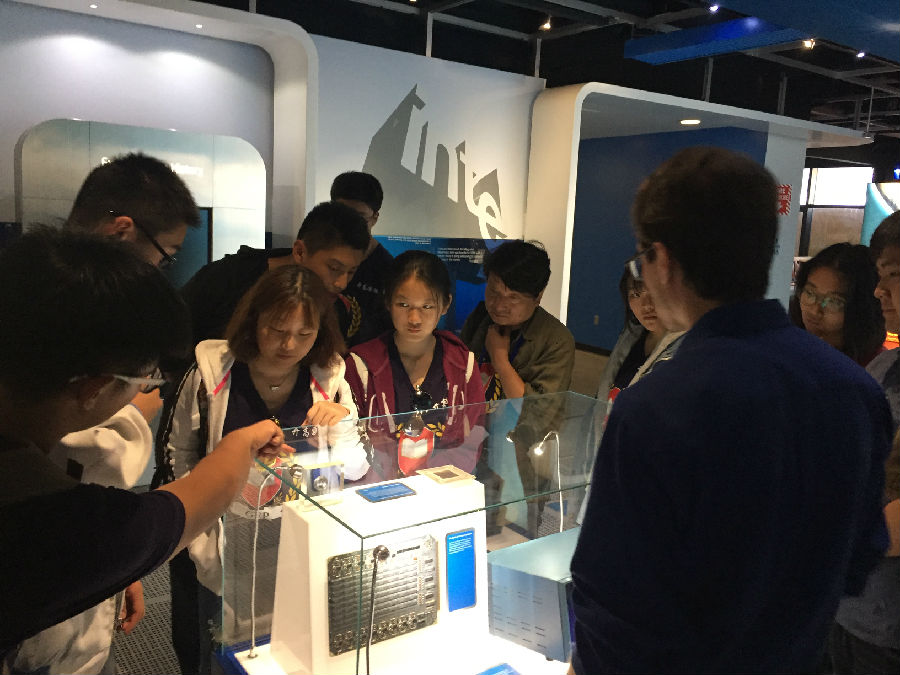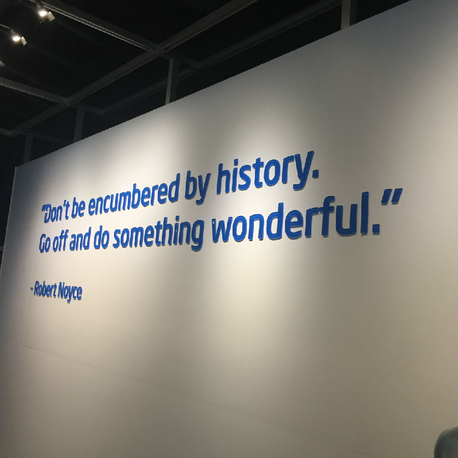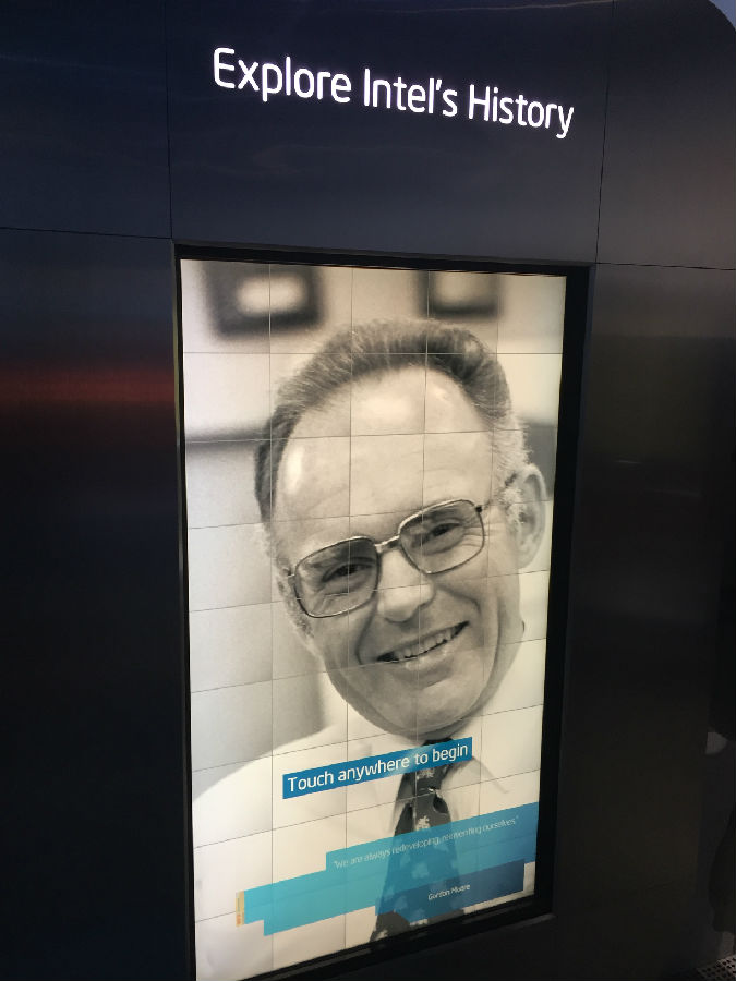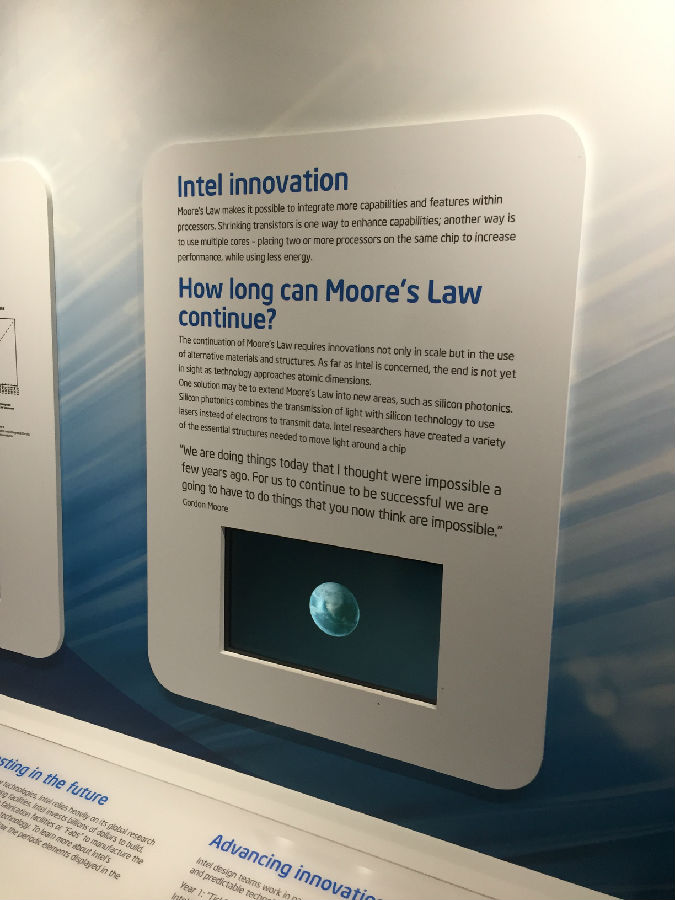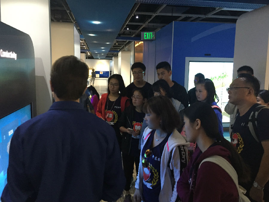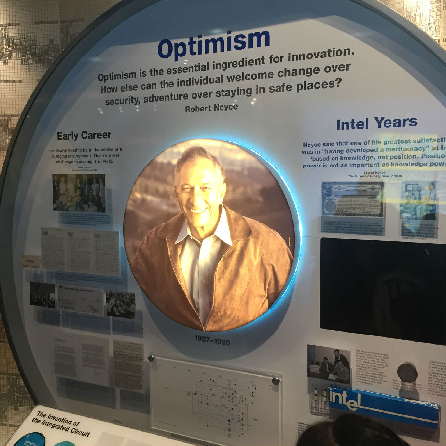 我们首站来到了英特尔公司,英特尔公司坐落在硅谷,总部正是位于美国加州,工程技术部和销售部以及6个芯片制造工厂则位于美国俄勒冈州波特兰。来到intel公司,仿佛进入了蓝色的海洋,从建筑到各种标识都体现出明快的蓝色。在这里有个陈列展即英特尔博物馆颇具特色,里面展示着因特尔的发展史以及出售一些纪念品。跟随一位因特尔工作人员进入展厅,进门先看到一张大幅黑白照片,是张常见的公司员工集体照,但不同的是这100人差不多全是富翁了。英特尔公司是全球最大的半导体芯片制造商,它成立于1968年,具有44年产品创新和市场领导的历史,照片是当时的100名员工,他们人人持有公司股票,据工作人员介绍说这里有1位上海人。1971年,英特尔推出了全球第一个微处理器,微处理器所带来的计算机和互联网革命,改变了整个世界。美国人也号称在近代有“四大发明”:电灯电话电影,然后就是因特尔公司发明了大规模集成电路。在展厅有一个电路实验:一块落地大玻璃,分别安放了许多材料,游人手持两个电极去接触,铜和铝是导体,能通电,玻璃和木材不导电,世界上大多材料是这两种,第三种是超导,第四种是硅这样的半导体。硅从沙子中提取,纯度要99.9。而电脑的芯片就是这种元素制作而成。英特尔公司是高科技设备及高素质的人才聚集地。