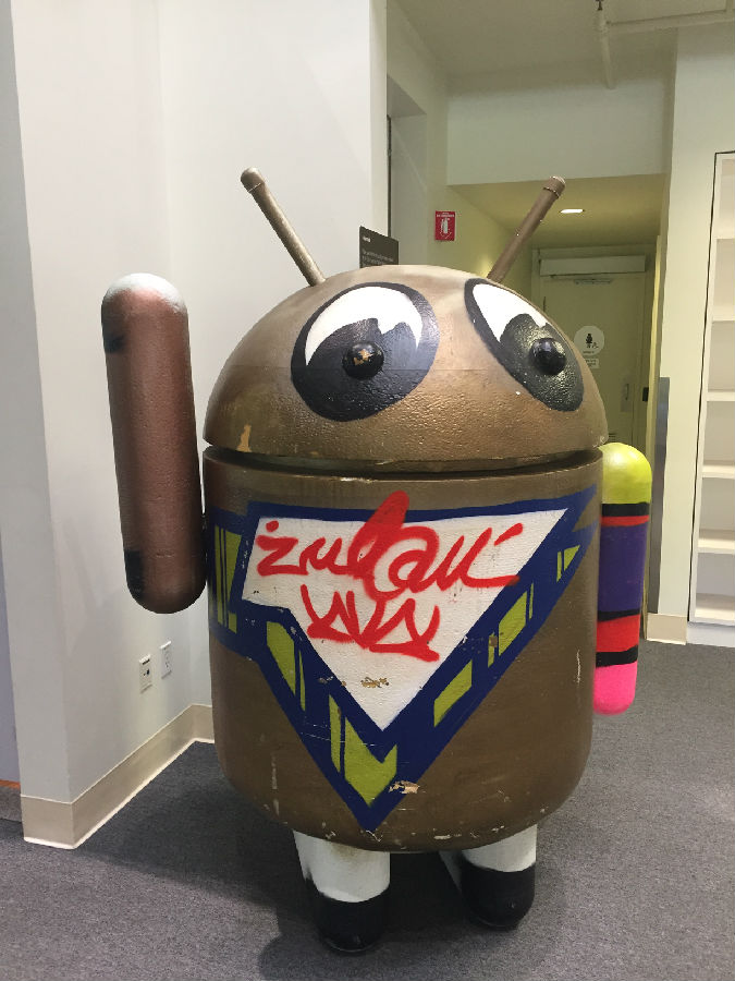 之后我们又来到谷歌工作园区,目睹来自各个国家的工程师,了解他们工作生活的状态,以及世界前十著名企业的发家发展史和运作模式等等。坐落于mountain view的google总部,真的不是用一个大就能形容。不同园区之间需要自驾,管理严格,不能进入building。但有一个访客中心,可以由google员工带领参观,不过需要提前预约。整个园区到处可见google代表性的充满活力的色彩,让人耳目一新。作为全球工程师的最佳雇主,没有之一。Google 公司的总部称作 “Googleplex”,它位于加利福尼亚硅谷的山景城,和斯坦福大学一样,公司没有大门,可以随意进入,只是每个建筑物都需要员工刷卡进入。 Googleplex有非常多的中国员工,走在公司里,一直可以听到普通话~图1是谷歌商店里的体检机器,大到银行系,小到每条巷弄,都可以找得到。有兴趣的话,可以找到自己的家。谷歌公司成立于1998年9月4日,由拉里佩奇和谢尔盖布林共同创建,被公认为全球最大的搜索引擎。谷歌是一家位于美国的跨国科技企业,业务包括互联网搜索、云计算、广告技术等,同时开发并提供大量基于互联网的产品与服务,其主要利润来自于adwords等广告服务。在谷歌公司创始人眼中,想象力是成功的关键,哪怕你只是异想天开。通过观察,谷歌公司园区更像是个大游乐园,之所以这样打造,目的之一是想让自己的程序员和工程师保持快乐的感觉,防止竞争对手将他们挖走。据介绍谷歌的两位创始人经常会冒出奇思妙想,譬如谢尔盖最近发明了一个手舞火箭筒的机器人,而拉里则为公司CEO埃里克塑造一个真人大小的雕像。公司的建筑都使用了公司LOGO上的红蓝黄三色,非常醒目。