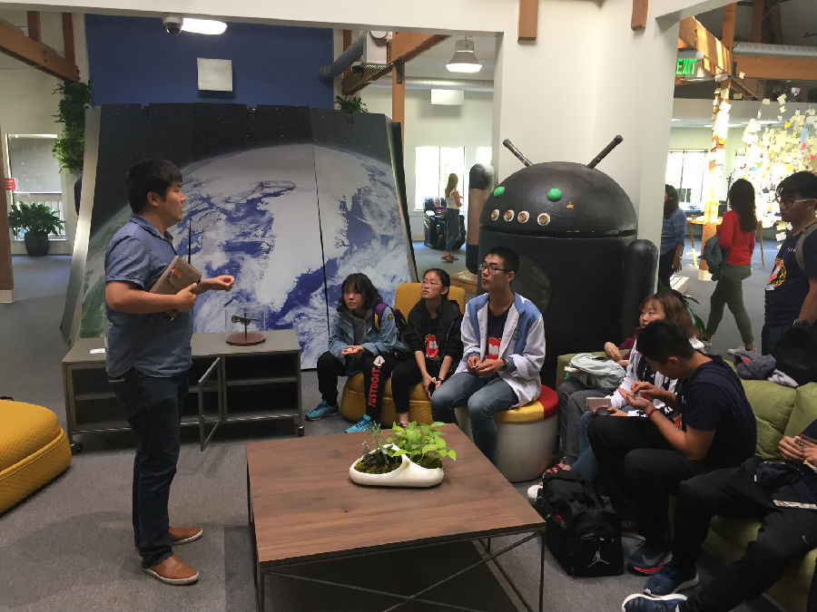 谷歌的大大小小的陈设都颇为舒服,员工泳池、茶歇、休憩娱乐馆等都无不彰显出谷歌的人性化建设,甚至我们2点到时就看到一批一批的工程师下班回家,原因是只要工作完成就可以随时回家。这里的工程师大都来自世界的顶级名校的人才,黄淞老师不忘跟所有同学分享各个知名企业包括特斯拉、华为、阿里、亚马逊、苹果等的人才构成、公司文化诸多方面,并提醒所有的同学们回国后要更加刻苦努力地学习,跻身世界顶尖名校,步入世界级更广阔的平台,让我们共同期许!