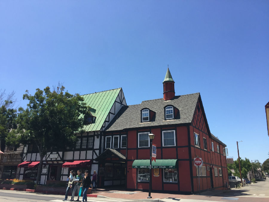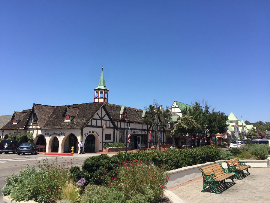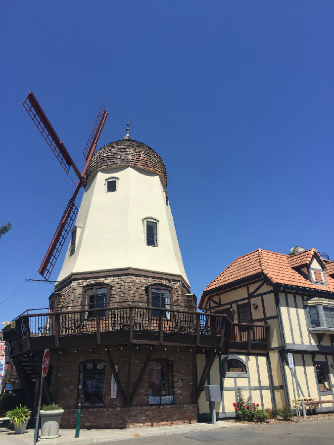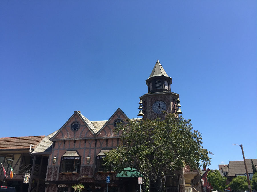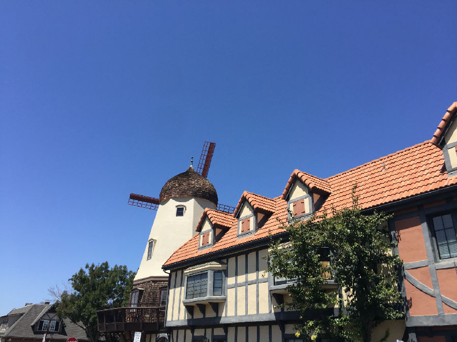 开封高中游学营一行13人的下一站是洛杉矶久负盛名的加州大学洛杉矶分校,即我们常说的UCLA,途中经过索尔万的丹麦小城,索尔万(Solvang)是美国加州圣塔巴巴拉县的一个小镇,在洛杉矶市以北150英里处,在旧金山以南300英里处,常住居民不到5000人,其中丹麦后裔占三分之二。 1911年,5位来自丹麦的移民买下了这块宝地,在此建起了一座乡村学校。在这里,最初的移民和他们的子女能够一边从事耕作或其它行业,一边接受丹麦传统教育。于是,围绕着这所学校,慢慢形成了这个远离丹麦的丹麦城。所夫昂(Solvang)在丹麦语中就是“阳光下的田野”的意思。