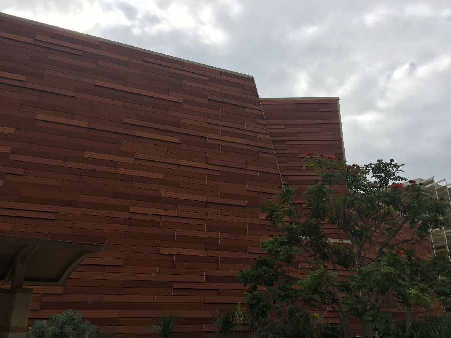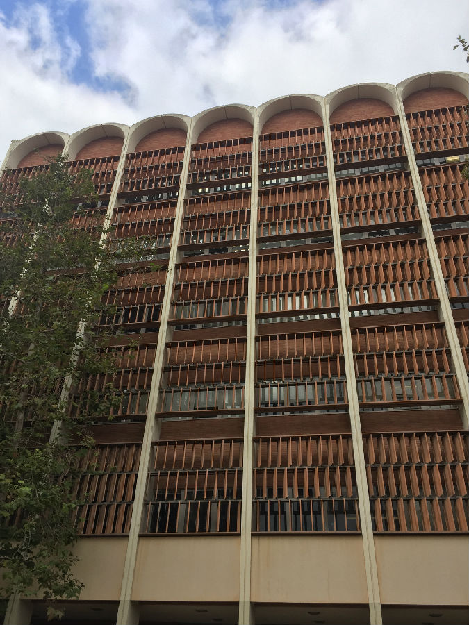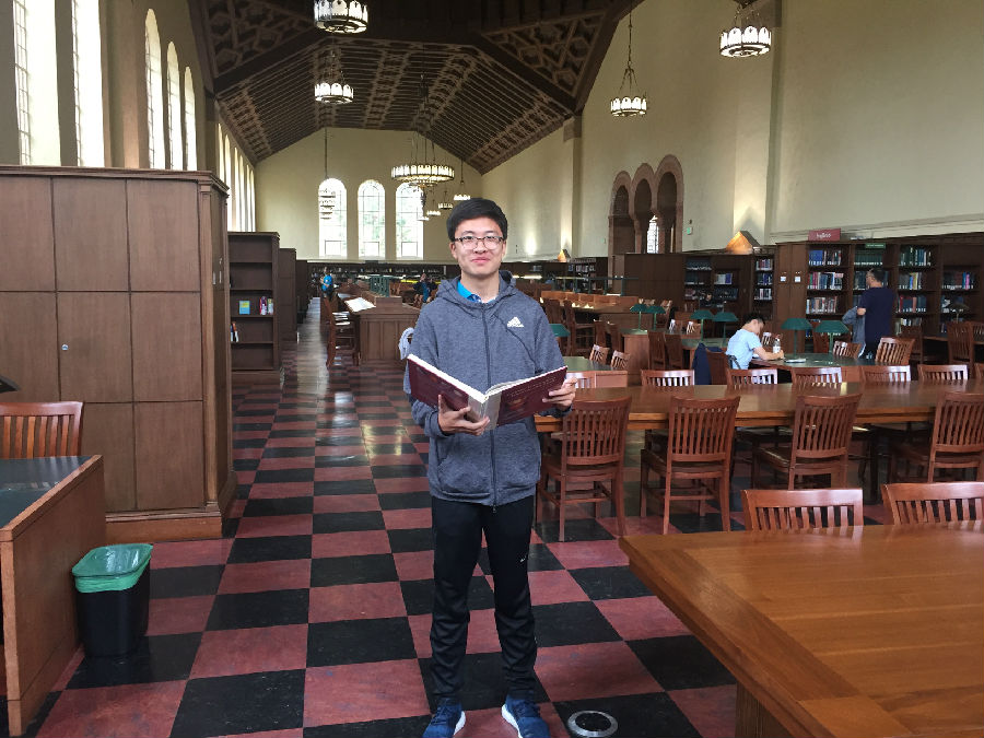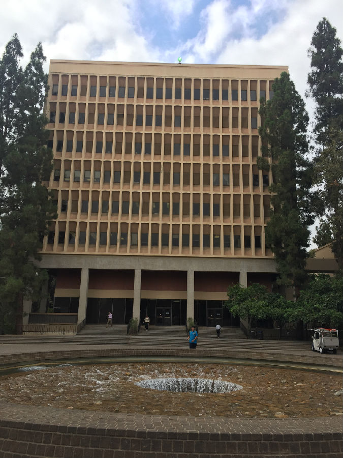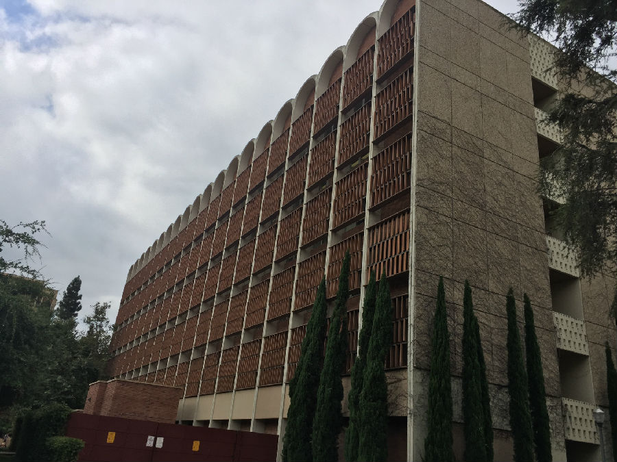 离开丹麦小镇,来到UCLA这所古老的公立学校,暑假期间正在这里做实验的开高13届校友胡昱已早早来到学校的标志前,等候大家的到来。胡昱本科毕业于复旦大学,直博研修的是核物理方向,这个暑期跟随UCLA的教授导师,同时也是国内的千人计划的大教授在UCLA核物理实验室日复一日地做研究和实验,一番寒暄后,胡昱带领大家进入UCLA,探访这所学校曾经的辉煌历史。据了解,加利福尼亚大学洛杉矶分校(University of California, Los Angeles,简称为UCLA)是位于美国加利福尼亚州洛杉矶市的一所公立研究型大学,是美国一流的综合大学。UCLA是美国商业金融、高科技产业、电影艺术等专业人才的摇篮,提供337个不同学科的学位,是全美培养尖端人才领域最广的大学之一。UCLA校园面积419英亩(约1.7平方公里),里面共有163个建筑,注册在校共约29000名本科生与13000名研究生。作为美国申请人数最多的大学,是全美高中生梦寐以求的名校之一。