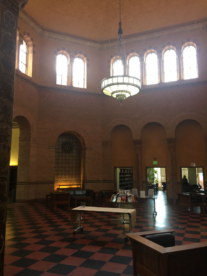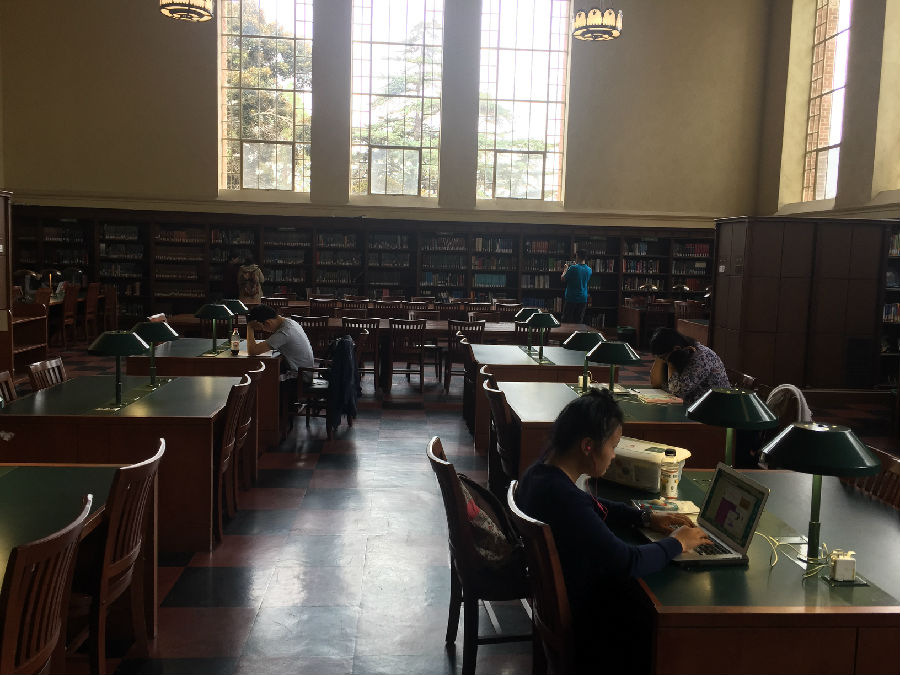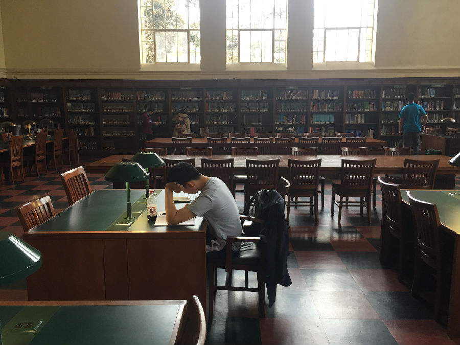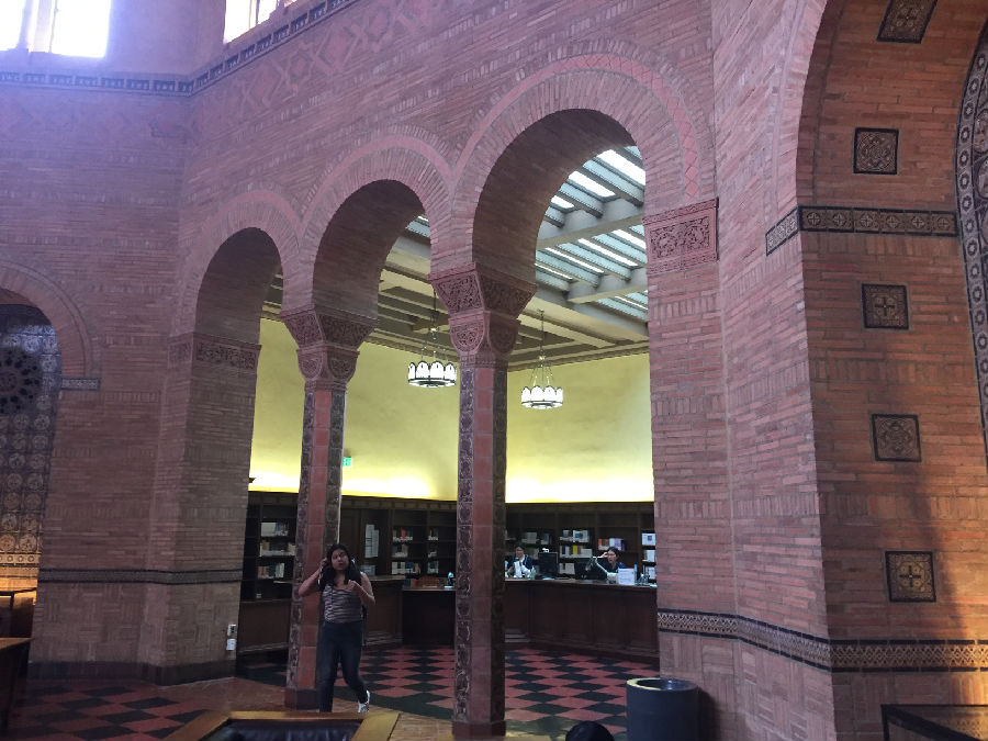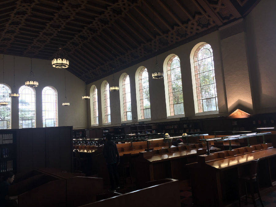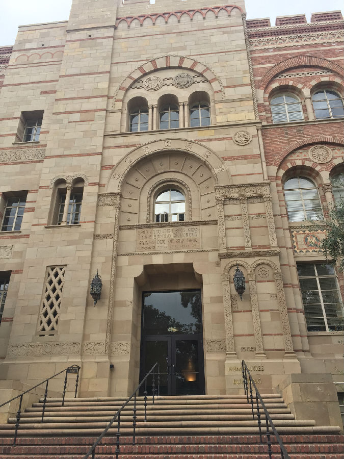 UCLA虽然身处洛杉矶,但与伯克利分校、纽约大学不同的是,UCLA跟城市的结合并不紧密,校园自成体系。校园里绿化很好,建筑由红砖砌成,看起来非常和谐漂亮。校园里安静平和,置身其中,你很难想象自己距离世界上最繁忙的都市仅仅几英里之隔。在UCLA研究生黄颖的带领下,我们来到UCLA古堡式的图书馆,所有人被眼前的一幕震撼了,就像哈利波特霍格沃兹学院一样,图书馆充满神秘和浓厚的学术气息,因为是暑期,所以馆内的学生并不很多,但是每位读书的同学并未因为我们的到来而停止读书,他们像是根本不知道外界发生了什么,埋头读书的认真劲让我们惊异。据学长说,UCLA 采用的是quarter system,这意味着,你一直在考试!!!本科大课教学,一堂课七八百人。和某些私立大学相比,UCLA 的 grade inflation (分数膨胀)没那么严重。在UCLA这样实在的大学,你得为你的成绩负责!不努力就没有A!因此每位同学在这里学习都非常拼命,学习到凌晨3-4点是常事,甚至通宵学习也不为过。UCLA的学生喜欢自称“ South Campus” people 和 “North Campus” people,住在South Campus的学生一般是工程类和自然科学类的学生,而North Campus 则是人文和商科类。South Campus 的日常:以计算机学院的学生为例,编程到凌晨3点,上午9点被闹钟吵醒,花了5秒钟决定不去上课了(因为是选修),然后继续睡,下午1点穿着篮球T恤短裤滚去实验室继续编程。。。North Campus 的日常:每天把头发梳的锃明瓦亮,衣着光鲜漂亮的去上课。笔记漂亮的能出书了,社交生活丰富,平均每周参加3场招聘。艺术系的学生的日常:电影专业的学生天天都呆在剧院里,音乐专业的学生24h*7d都在练琴,而且只跟同专业的学生出去玩儿。