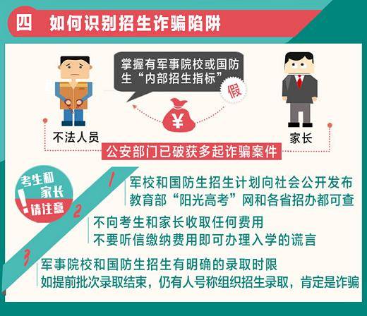 今年深入实施阳光招生工程,要求加大招生信息公开力度,确保军队生长干部招生工作全程公开透明。主要有3个方面的改进:一是搭建信息公开平台。主要是依托国家教育部阳光高考网(Gaokao.Chsi.com.cn)、中国军网(www.81.cn)、军队人才网(www.81rc.mil.cn)建立招生宣传网络平台,实现招生政策信息的及时发布及关键环节的信息查询。二是开展多种形式宣传活动。在军地有关媒体上播发招生政策、院校情况、学科发展等内容。5月中旬,军区级单位指导省军区和招生院校开展“军队招生宣传月”活动,组织招生政策咨询会,依托部分重点中学建立生源基地,及时掌握优质生源情况,为考生填报志愿提供信息咨询。三是畅通信息咨询及下载渠道。省军区及招生院校开辟网络专栏、开通咨询电话,提供招生政策、计划,以及军检安排等信息咨询,政治考核表和军检工作手册等文件可通过各省级高校招生办公室官方网站下载,军检结果可通过网络查询,进一步减少工作环节、增强招生工作透明度。四是加大招生全程舆论监督。组织军队新闻媒体对省军区、院校年度招生情况进行跟踪采访报道,并对新生复查复试、入学军训、新生教育等工作进行全方位宣传,将招生工作全程纳入舆论监督之中。