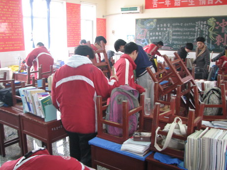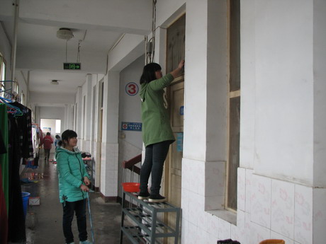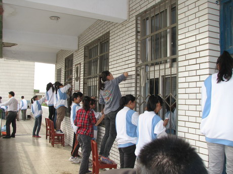 在大扫除中,有的班主任带领学生挥起大扫帚打扫道路,有的老师为擦玻璃的同学端来净水换洗抹布,打扫清洁区的同学更是找来三轮车清运扫出来的垃圾,1509、1510和1514班合作,把树林绿化带厚厚的树叶清运干净。同学们不放过教室内的任何死角,高二高三的同学把教室的窗帘都摘下来进行了清洗,清洗后的窗帘搭在走廊栏杆上晾干,形成了一道独特的风景。老师们更是一起动手打扫办公室,擦桌子、拖地干得热火朝天。大家把角落里堆积的、平时舍不得处理的东西彻底清干净,让办公室变得干净整洁。