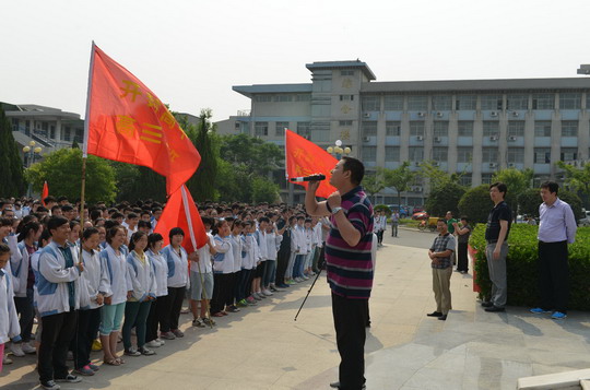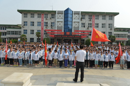 6月5日,高三全体师生集合科技楼广场举行高考誓师大会,宋全会副校长发表热情洋溢的讲话。
