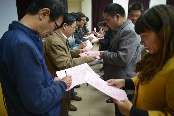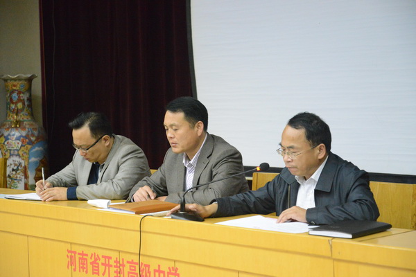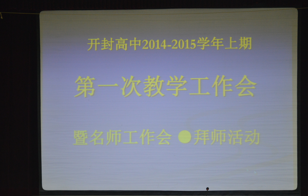 2014年10月23日,开封高中召开由全体任课教师参加的2014—2015学年上期第一次教学工作会。校党委书记、校长耿振勇、副校长乔国颖、副校长宋全会参加了会议。教务处主任蒋中兴就本期教学研讨会、教案评比、优质课比赛、早晚自习检查、教学巡查等主要教学工作进行了通报和回顾,就下一阶段开展“一课一研”工作、三个年级联考工作、高二全省学业水平考试等工作进行了安排部署。副校长乔国颖宣读了名师的责任和义务,校长耿振勇与名师代表签订了责任书。会议还举行了拜师活动。宋永刚、焦玉江、郑伟锋、王梦真四位老师做了典型发言。
