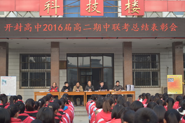 为总结经验,表彰先进,鼓舞斗志,激励全体同学,并反思存在的不足为下半学期的做法找思路,11月21日下午,2016届全体师生在科技楼前隆重召开“开封高中2016届期中考试总结暨表彰大会”。会议由开封高中教务处副主任、16届年级主任白建涛主持,开封高中副校长宋全会,师训处主任毛广文,学生处副主任王炎培,团委副书记苗森,2016届年级副主任吴杰,2016届年级副主任张晋波出席了会议。
