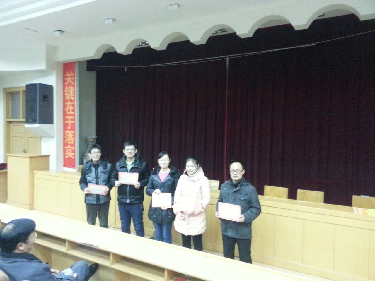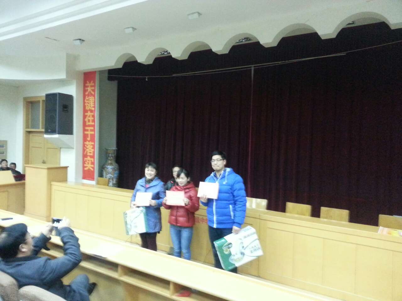 2015年1月8号的全体教职工大会上,宋全会副校长为我校元旦联欢晚会节目获奖教师颁发奖品。荣获“自创节目组”一等奖的是16届的周阳、姜雯玫、王奇芬老师的开高版《吉祥三宝》,;二等奖是17届的张恒、王萌萌、杨芳芳和杨彦旭老师的三句半节目《说说咱开高》以及刘深营老师的太极拳表演;三等奖是15届本部雷勇、韩艳明、罗军伟和孙培森老师的三句半节目《高三会更好》以及17届西校区的詹娇、韩舒、赵晓飞和李秀娟老师带来的舞蹈《倍儿爽》;获得鼓励奖的是体育组的《疯狂猜词》节目。