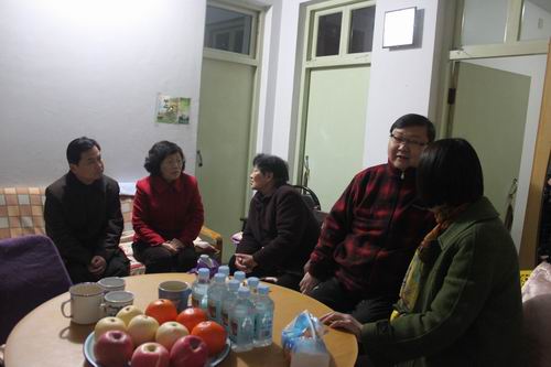 2015年春节即将到来之际,正市长级干部朱丽萍一行到我校白冰老师家中送来了寒冬中的温暖慰问。