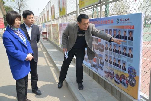 朱市长一行在学校校长耿振勇等领导班子的陪同下到学校运动场视察了学生体育加试情况,对我校关于开封市中招体育考试所做的充分准备工作给予肯定。