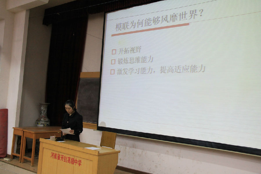 会议由开封市模联协会副秘书长张文鹏主持,市模联协会秘书长沈铎为大家介绍了本次郑州市会的整体情况。为了让大家进一步了解模联,来自开封高中的严馨莹、张宗梦阳和马筱涵三位同学从不同的角度为大家介绍模联并结合自己的经历为大家讲述自己的模联之旅。严馨莹同学为大家分析了模联为何能够风靡全世界,让大家对模联有了整体的认识;张宗梦阳同学结合以往的参会经历总结了各个会场中的博弈技巧;来自1701班的马筱菡同学分享了自己的海外参会经历,使大家对国外会场有一个大致的了解。