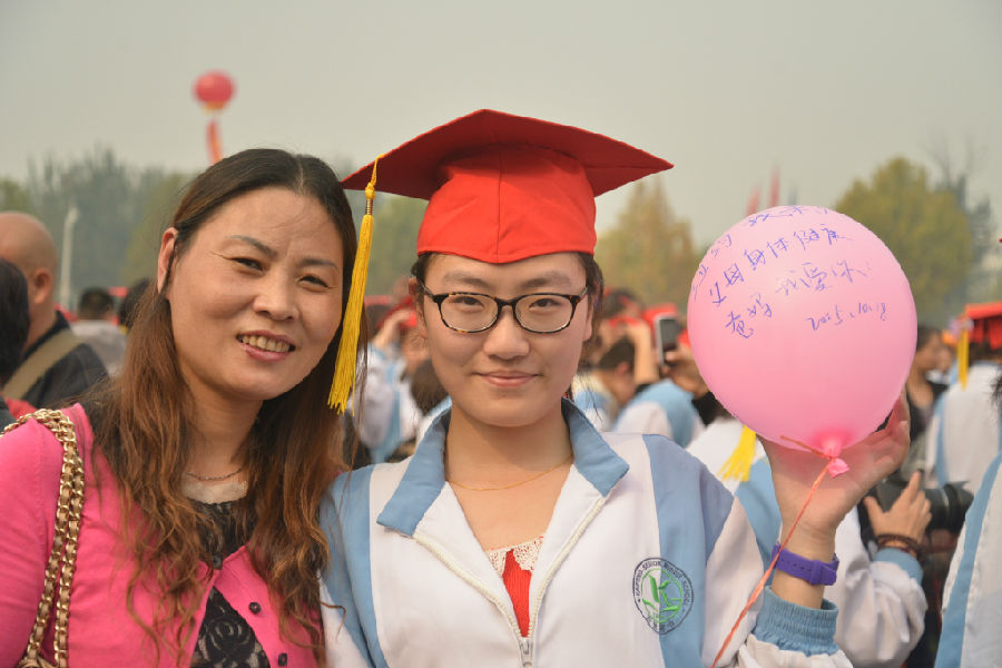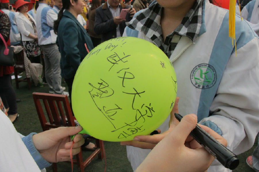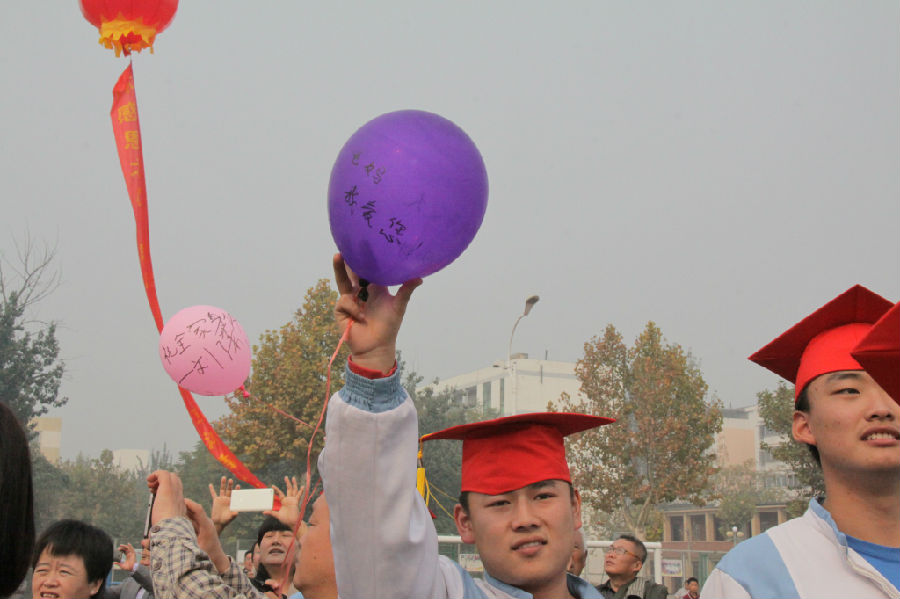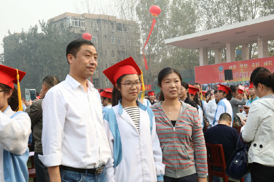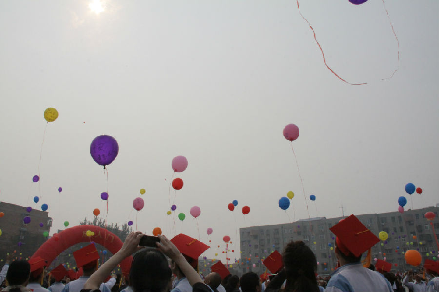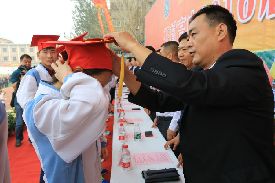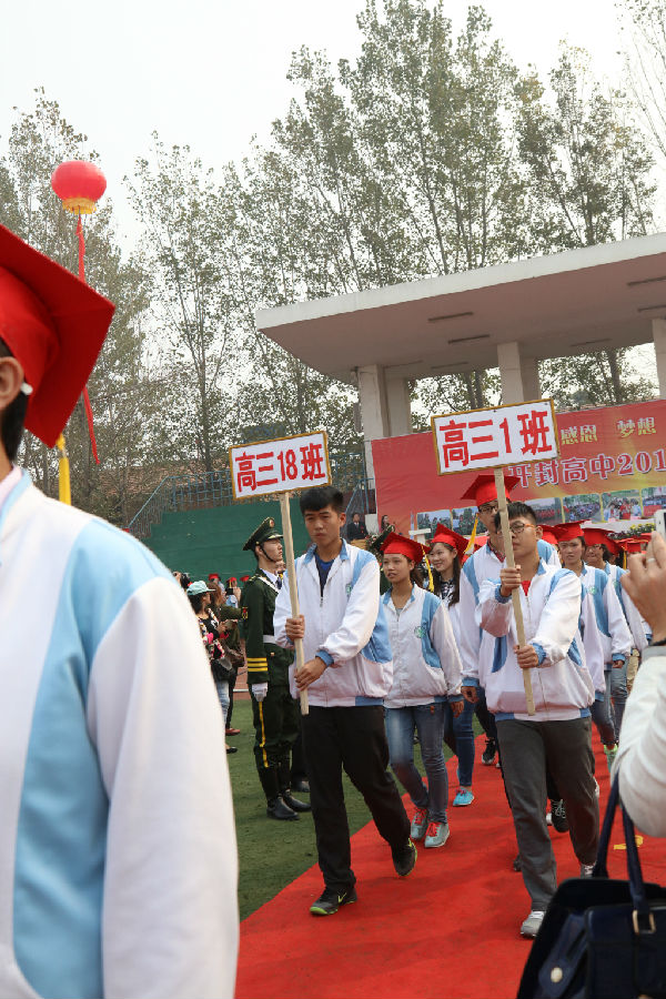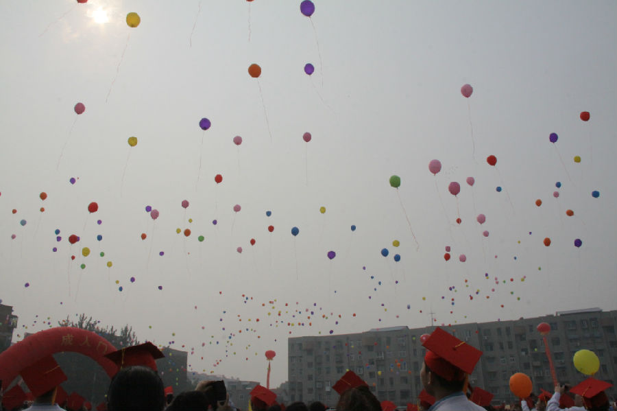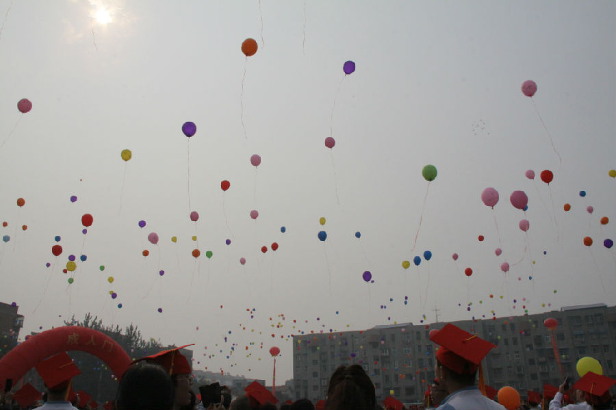 仪式从《天之大》和《父亲》两首动人的演唱开始,开封高中的国旗护卫队的同学英姿挺拔、步履铿锵,在升旗仪式环节表现尤为突出,将大校风范展现的一览无遗!台上就座的相关领导们一起为来自18个班级的学生代表冠盖成人礼帽,李局长和耿校长共同揭幕了大蛋糕,将把带着满满祝福的蛋糕分发到每个班级学生代表的手中。紧接着每个学生与自己的家长进行了互换一封信来交流彼此心声,每个家长都情不自禁地拥抱了孩子,并为之冠盖成人礼帽,然后各班老师为学生正衣冠、正流苏、握手,学生向老师拜谢行礼;由刘泽全等四名同学真情朗诵的《启程》令在场人员无不为之动容;之后,学生在氢气球上写上自己的理想大学、青春梦想,伴随着18声礼炮,在主持人的号令下一同放飞,当漫天飞舞的气球飞向蓝天时,整个操场瞬间沸腾了,欢呼声响彻云霄,这一幕将成人仪式活动推向高潮。最后,同学们面对国旗庄严宣誓后,一起走过“成人门”,当学生们依次通过成人门时,站在另一端等候的家长们看着此情此景,眼中含着热泪,有的满是复杂留恋的表情,有的脸上绽放着欣慰幸福的笑容,纷纷上前迎接并合影留念。集体照留念后,同学们在各自班中集体庆生,此次活动在每一位同学心中留下永生难忘的印记。
