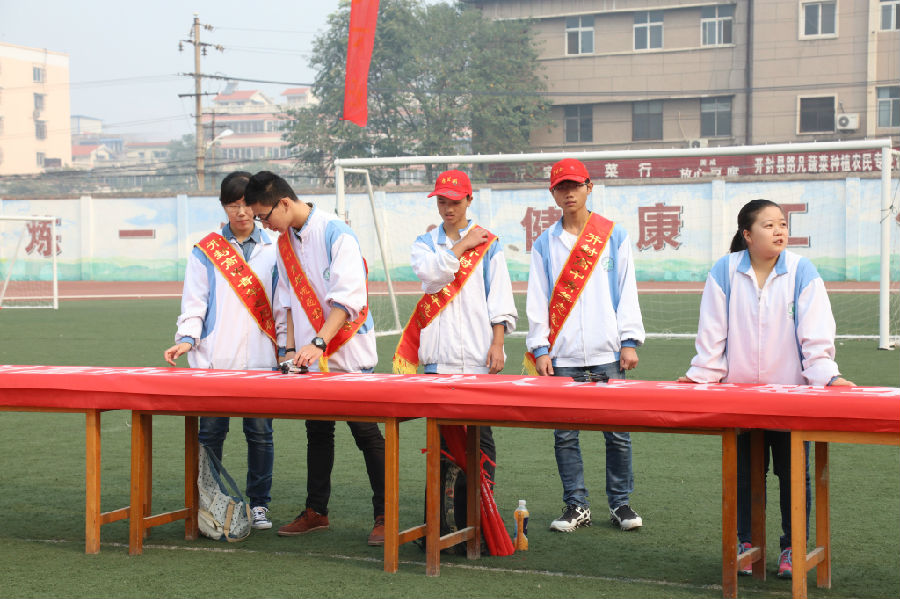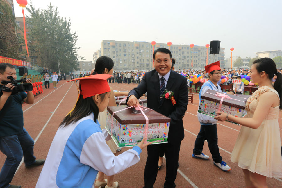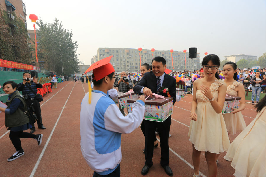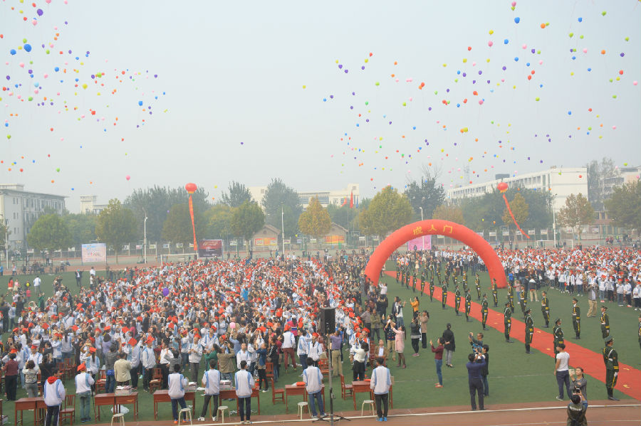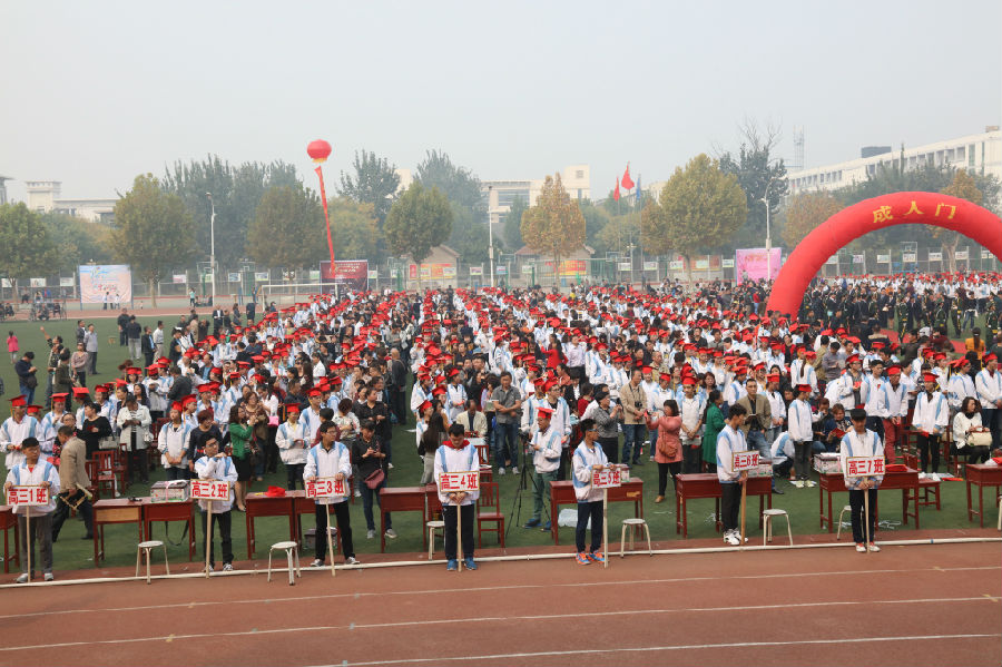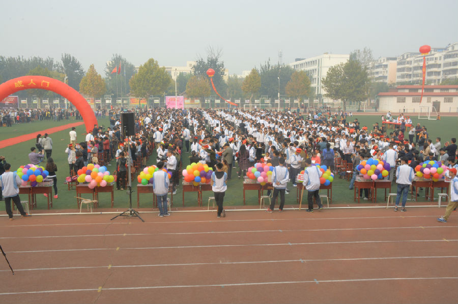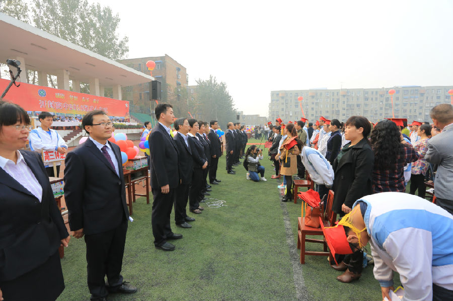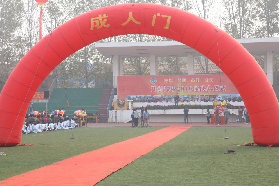 金秋送爽,10月18日,开封高中洋溢着一派喜庆的气氛,彩球高挂、红旗飘飘、写有成人门的大红拱门高高耸立、精心布置的主席台上鲜花锦簇。2015年开封高中16届高三成人仪式隆重举行。在学校开阔的操场上,我校2016届学生及家长怀着无比激动的心情齐聚于此,共同见证孩子成长过程中这神圣的一刻。开封市人大教工委教科文卫主任杨自强,开封市教育局党委书记、局长李尕果,开封市团市委副书记张腾生,开封市教育局副局长李一凡、金秋玲,开封市金明中小学部校长刘俊杰应邀参加了此次仪式。