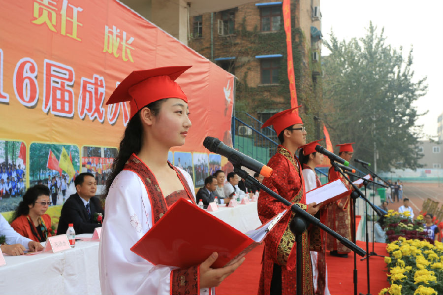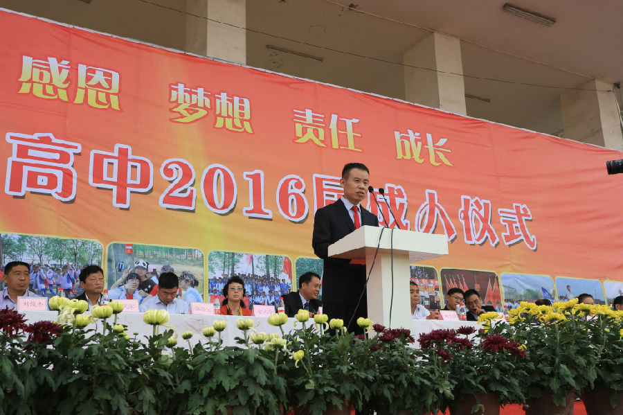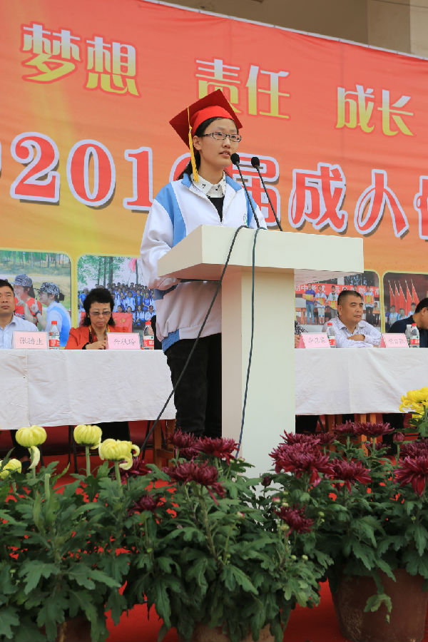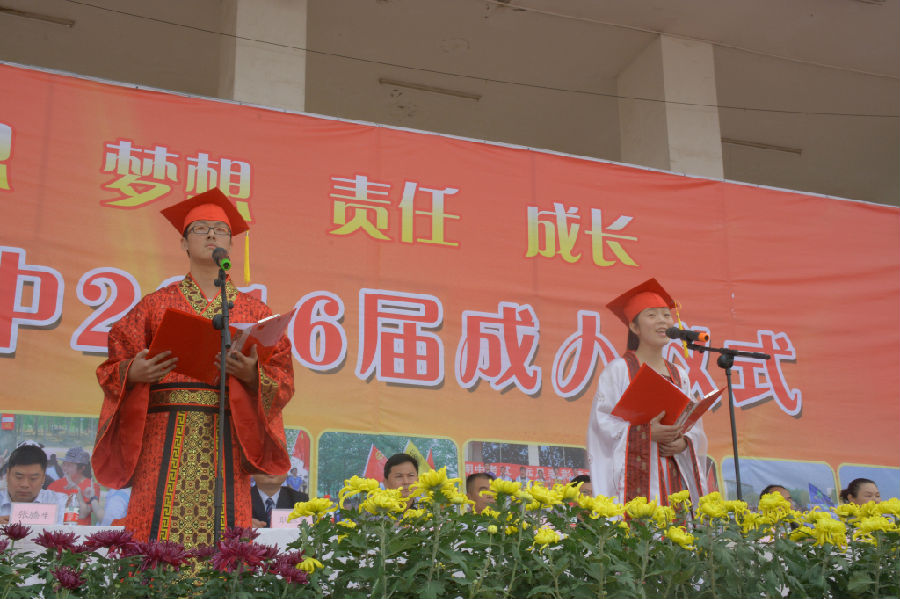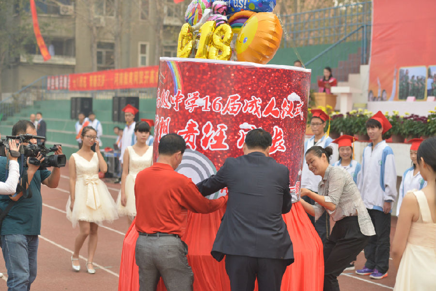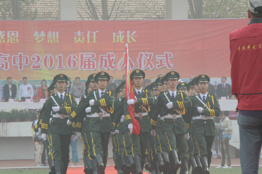 相信这次由校方精心筹划的成人仪式,在每个参与的学生心中都留下了深刻而美好的回忆,让同学们懂得和明白了父母家长曾经的辛苦付出、老师们的辛勤培育、学校领导的殷切期望,跨过成人门后,就意味着从此要肩负起宪法所赋予的成年人的义务与责任,今后将要经历更长的历练和担当。衷心祝愿2016届全体师生明年6月梦想成真!