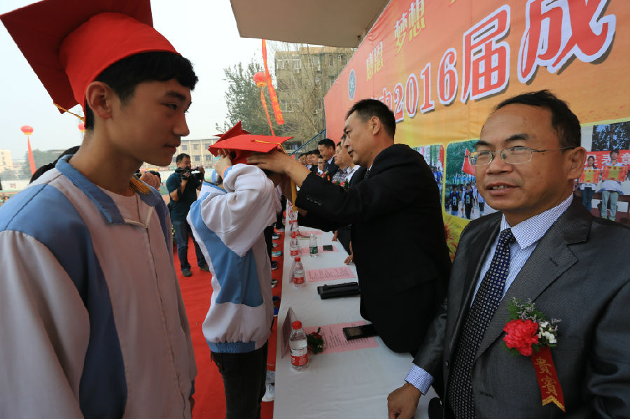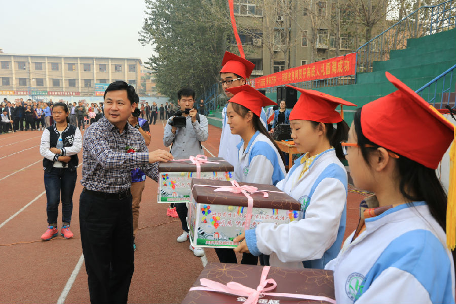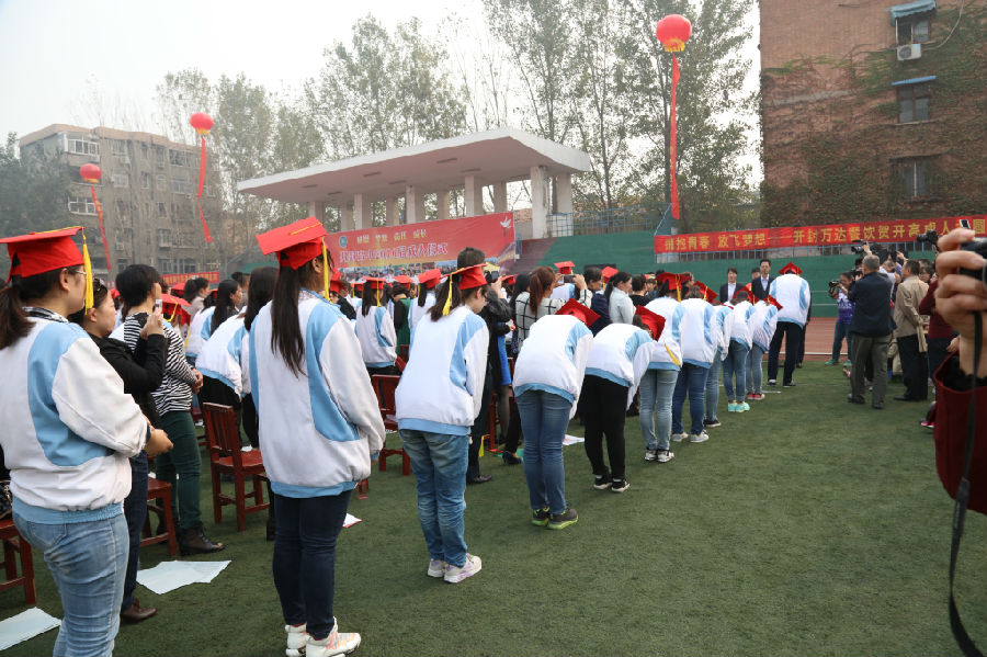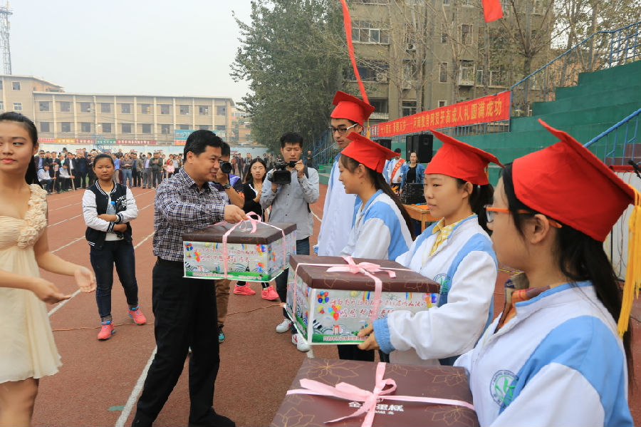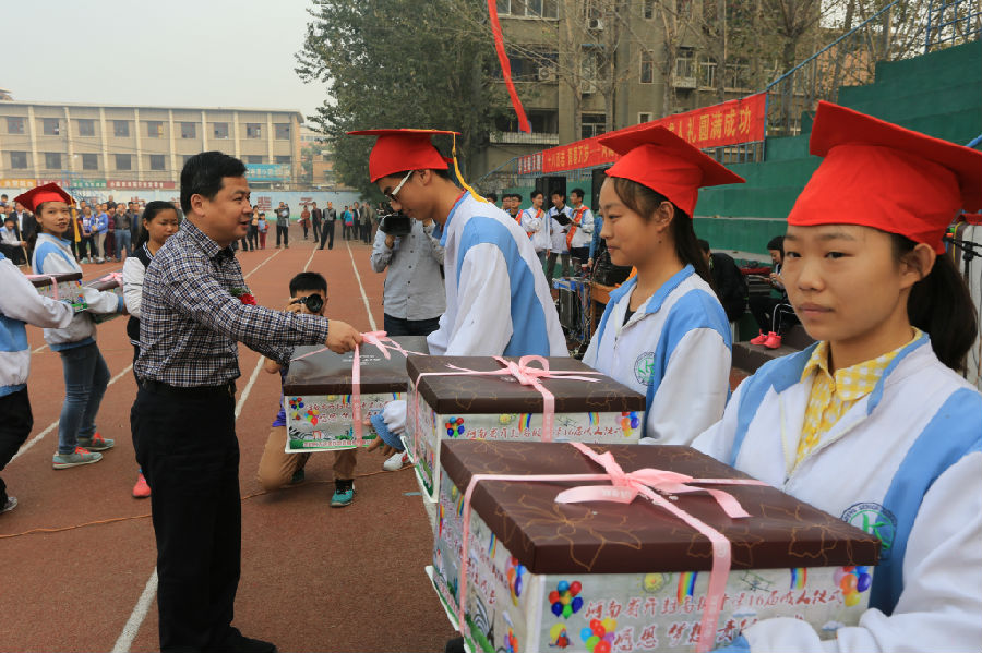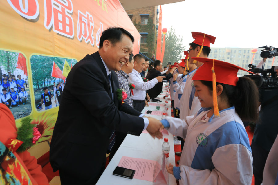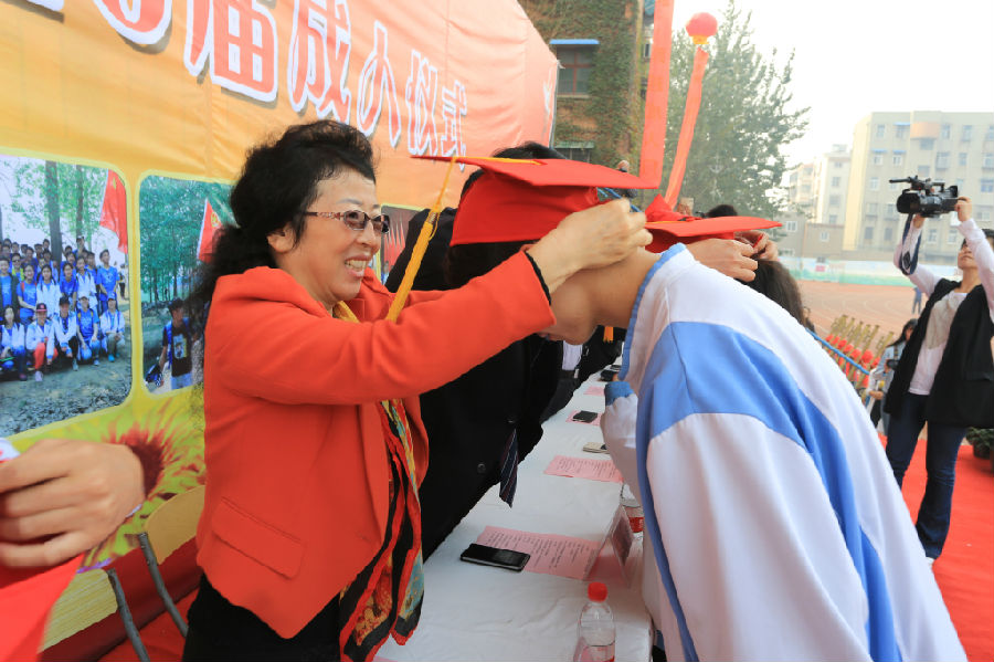 相信这次由校方精心筹划的成人仪式,在每个参与的学生心中都留下了深刻而美好的回忆,让同学们懂得和明白了父母家长曾经的辛苦付出、老师们的辛勤培育、学校领导的殷切期望,跨过成人门后,就意味着从此要肩负起宪法所赋予的成年人的义务与责任,今后将要经历更长的历练和担当。衷心祝愿2016届全体师生明年6月梦想成真!