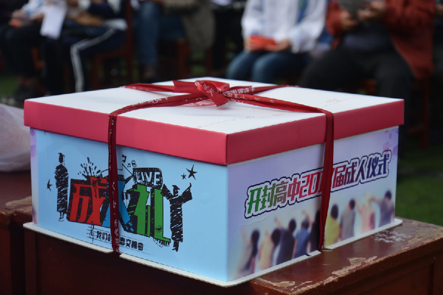 仪式从《天之大》和《父亲》两首动人的演唱开始,开封高中的国旗护卫队的同学英姿挺拔、步履铿锵,在升旗仪式环节表现尤为突出,将大校风范展现的一览无遗!台上就座的相关领导们一起为来自东西两个校区23个班级的学生代表冠盖成人礼帽,茹老先生、李局长、赵书记和顾校长共同揭幕了大蛋糕,将把带着满满祝福的蛋糕分发到每个班级学生代表的手中。紧接着每个学生与自己的家长通过互换一封信来交流彼此心声,每个家长都情不自禁地拥抱了孩子,并为之冠盖成人礼帽,然后各班老师为学生正衣冠、正流苏、握手,学生向老师拜谢行礼;由吴欣洁等四名同学真情朗诵的《启程》令在场人员无不为之动容;之后,学生在氢气球上写上自己的理想大学、青春梦想,伴随着18声礼炮,在主持人的号令下一同放飞,当漫天飞舞的气球飞向蓝天时,整个操场瞬间沸腾了,欢呼声响彻云霄,这一幕将成人仪式活动推向高潮。最后,同学们面对国旗庄严宣誓后,一起走过“成人门”,当学生们依次通过成人门时,站在另一端等候的家长们看着此情此景,眼中含着热泪,有的满是复杂留恋的表情,有的脸上绽放着欣慰幸福的笑容,纷纷上前迎接并合影留念。集体照留念后,同学们在各自班中集体庆生。
