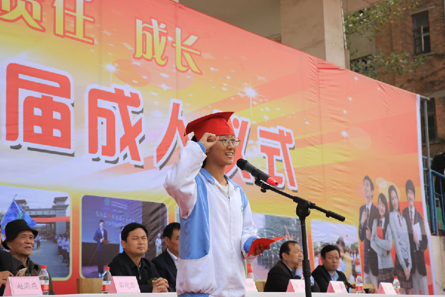 相信这次由校方精心筹划的成人仪式,在每个参与的学生心中都留下了深刻而美好的回忆,让同学们懂得和明白了父母家长曾经的辛苦付出、老师们的辛勤培育、学校领导的殷切期望,跨过成人门后,就意味着从此要肩负起宪法所赋予的成年人的义务与责任,今后将要经历更长的历练和担当。衷心祝愿2017届全体师生明年6月梦想成真!