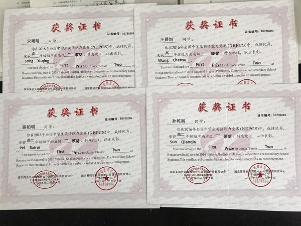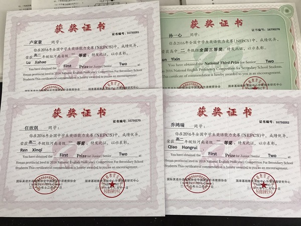 5月16日,我校接到全国中学生英语能力竞赛组委会发来的喜报。我校参赛选手在刚刚结束的全国中学生英语能力竞赛中表现突出,凭借出色的英语水平,获得了大赛评审专家组的高度肯定,取得了优异成绩!