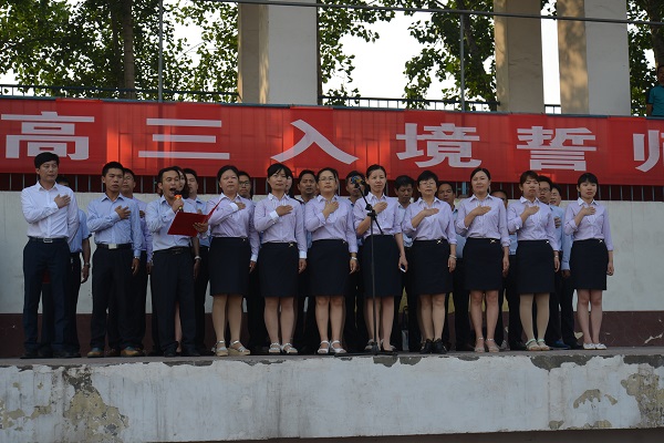 值我校2018届学生正式进入高三之际,为了振奋年级师生士气,激发年级师生拼搏高三、实现梦想的信心与决心,6月19日上午7点整,东校区2018届高三入境宣誓大会在校操场隆重举行。党委书记、校长耿振勇,副校长乔国颖、宋全会、马分产,校务委员荣海洋,以及东校区2018届、2019届全体师生,2018届部分学生家长参加了本次宣誓大会。本次大会由校学生处主任王炎培主持。