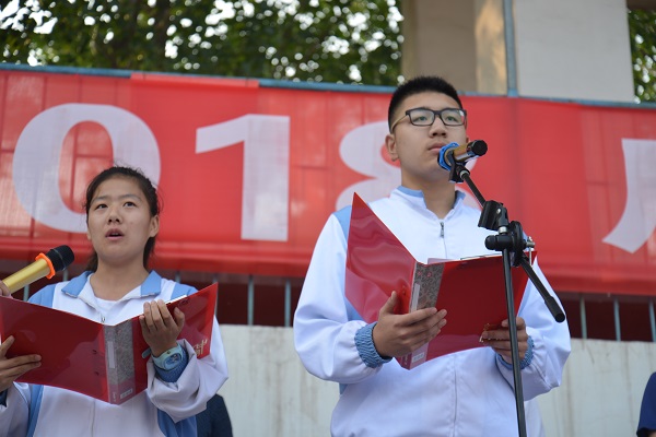 上午7时,伴随着1801班王紫霄同学动情的朗诵,大会正式开始。首先进行的是升旗仪式,在国歌、校歌声中,国旗、校旗及高三年级段旗依次升起。担任本次升旗仪式的升旗手是1801班孙乾泰,1802班安子瑜、沙子豪,1803班李冠成,护旗手是1806班刘华萌,1808班彭小柯,1811班薛璨,1812班王双艳。