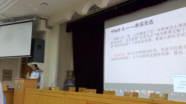 在本届骨干成员竞聘演讲中,竞聘社团骨干的高一学生数量多,能力强,积极性高,为新一届社团骨干组成打下了基础,为即将开展的心理健康教育活动做了很好的铺垫。同时,在本次活动中,进行了5.25心理健康活动周的筹备会,为即将到来的心理健康活动周做好充分准备,争取把今年的活动组织的更好。