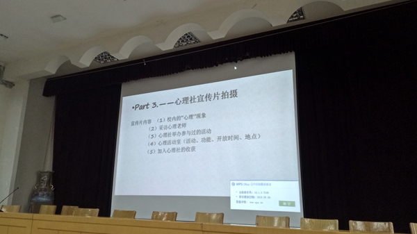 5月9日下午,经过心理社团的精心策划和准备,在我校东报告厅举行了首次心理社团换届选举及5.25心理健康活动周筹备会。
