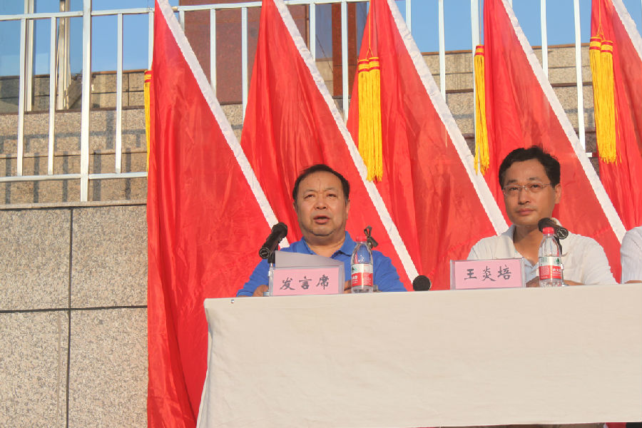 校长耿振勇致开幕辞,他和同学们回顾了开高悠久的历史,以及近年来取得的优异成绩,强调了军训的意义,并希望同学们通过军训培养战胜困难的精神;提高自主管理的能力;养成良好的生活学习习惯,认真完成训练任务,为今后的高中学习生活打下良好的基础。