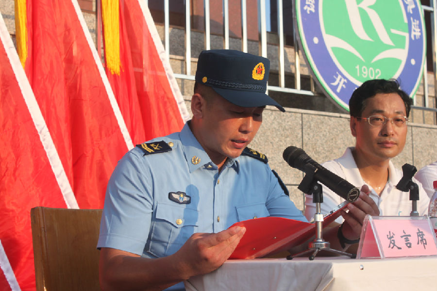 首先,副校长刘培兵宣布军训纪律。之后教官代表郑建武发言,他表示在军训中将以良好的军人形象带领学生,以过硬的军事技能引导学生,对参训学生严格要求,严格训练,并以兄长之情关心爱护大家,尽力为同学们营造良好的训练和生活氛围,带领同学们不折不扣地完成训练任务。