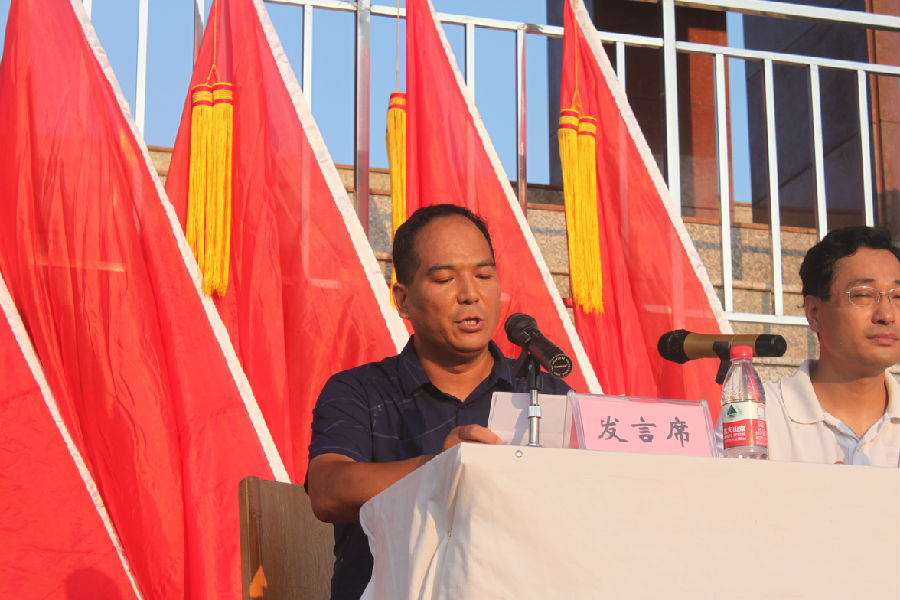 高一16班班主任雷勇作为教师代表发言,希望同学们通过军训磨砺自己,提高身体素质,培养坚强意志和团结互助精神,以辛勤的汗水为墨,以顽强的毅力和积极进取的精神为笔,挥洒出阳光下最壮丽的宣言!