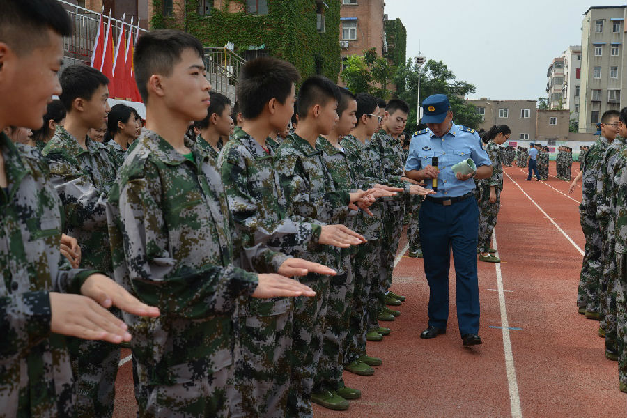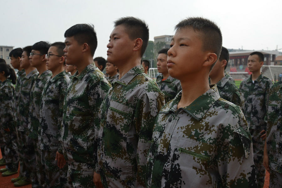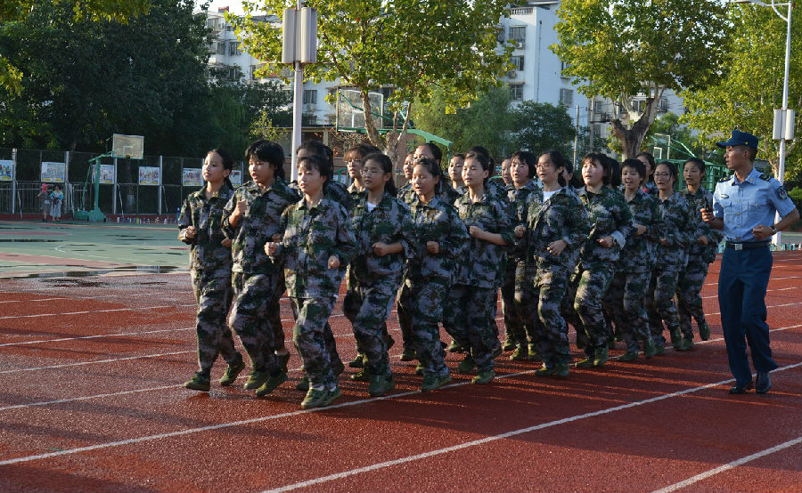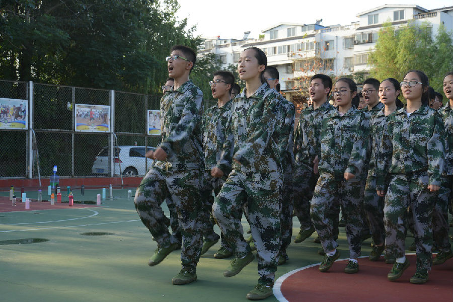 “一二一,一二一”,同学们在教官嘹亮的口号下,斗志昂扬地迈着整齐的步伐向操场走去,开始上午的军事训练。