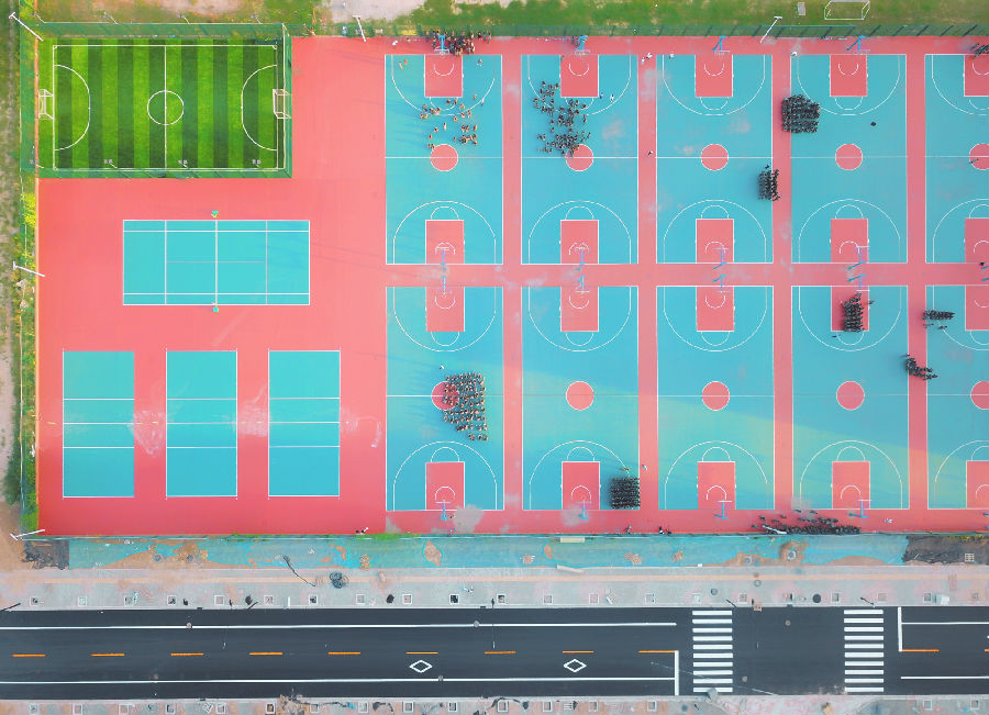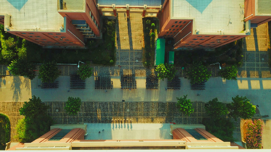 今天的训练科目以会操彩排为主,同学们一个个精神抖擞,如同就要踏上战场的战士。口号声此起彼伏响彻校园,随着充满节奏感的音乐,第一次的完整排练结束了,虽稍显生疏,但从他们脸上自信的表情可以看出在教官的带领下,大家有信心越练越好!坚定有力的目光,微微上扬十五度的下巴……经过军训的洗礼,学生们已逐渐成为了真正的勇士。