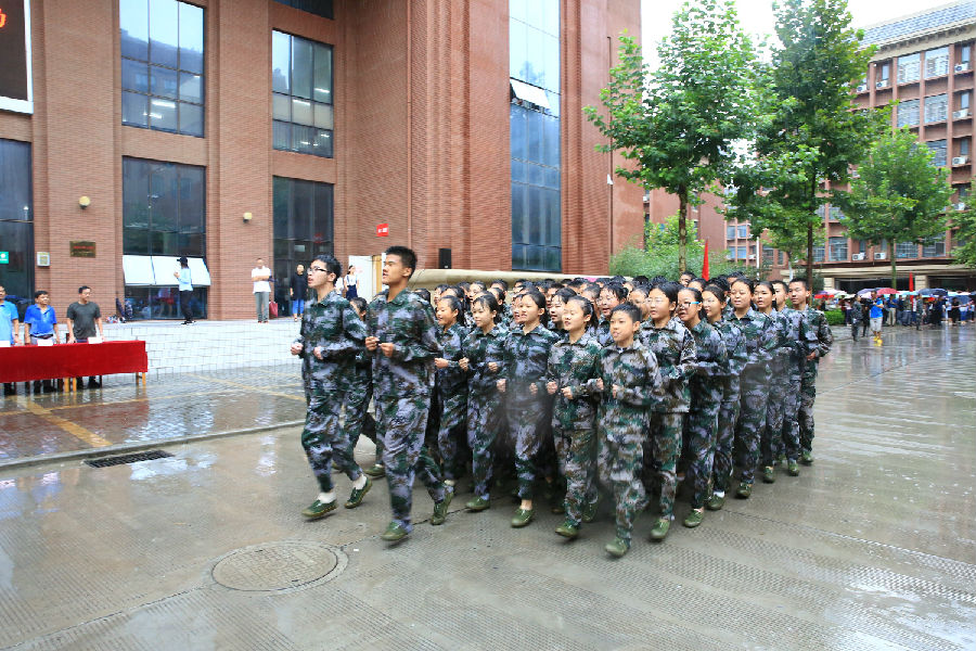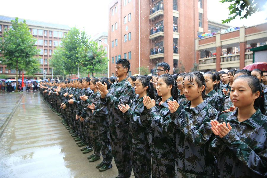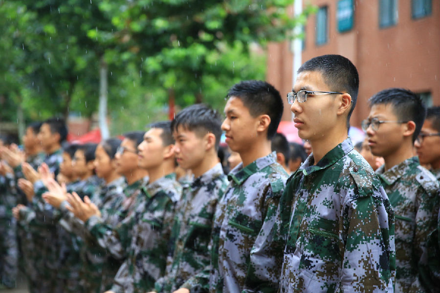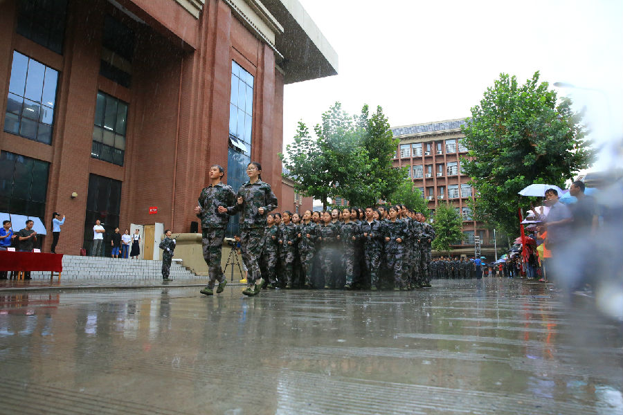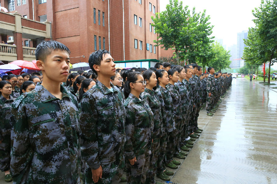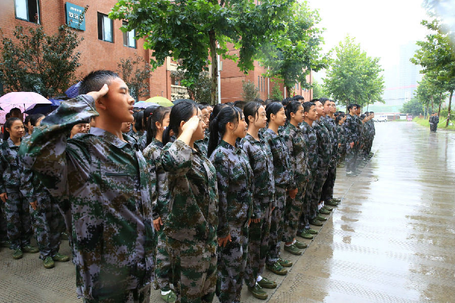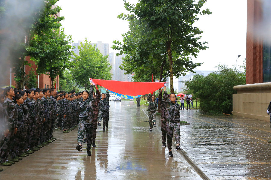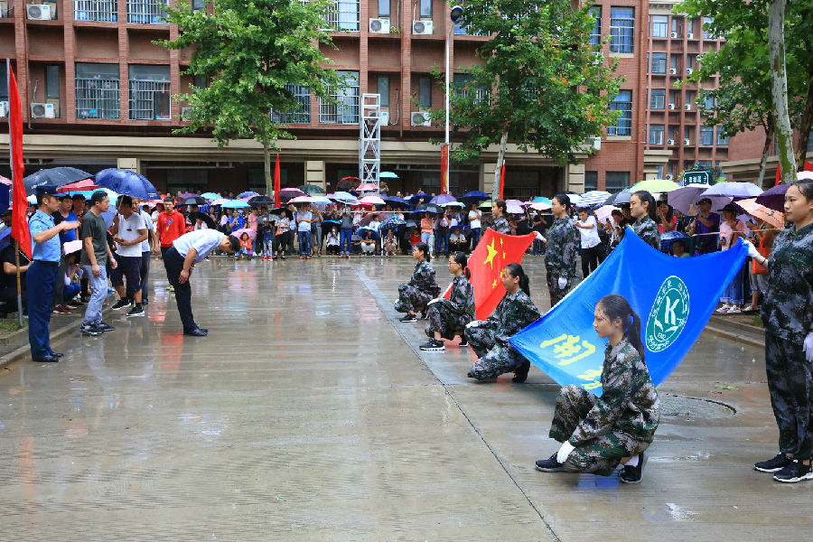 虽然天公不作美,但同学们的激情丝毫没有减退。随着军训教官一声口令,全体学生整齐列队、军容严整、精神焕发,耿校长在教官的陪同下检阅了此次参训的7个班级,在分列式汇报表演中,500多名参训新生,没有因为下雨而有丝毫的退缩,他们用整齐的步伐、响亮的口号、昂扬的斗志、抖擞的精神,向学校、老师、教官和父母交了一份满意的答卷,展现了2021届新生昂扬向上的精神风貌。