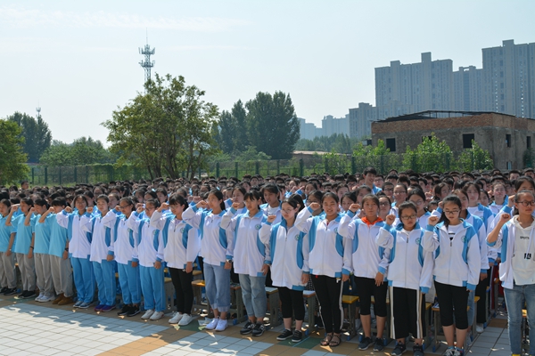 最后,学生会主席李雨桐同学带领全体学生宣誓,立志要奋发图强,自强不息,为开高争光。