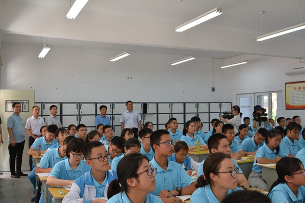耿校长、顾校长向领导们简单介绍了我校近几年来的发展概况,随后一行人来到了教学区,马璞副市长看望了正在上课的同学们,并走进高三年级教师办公室,亲切地询问了老师们工作、生活情况。马市长勉励高三老师,要做同学们的导师和益友,细致关心他们的身心健康,培养良好的品德,进一步提升各科高考成绩,带领高三同学们在2019年的高考中取得更大的胜利.