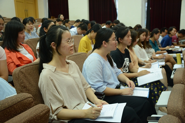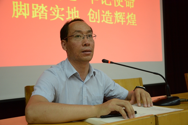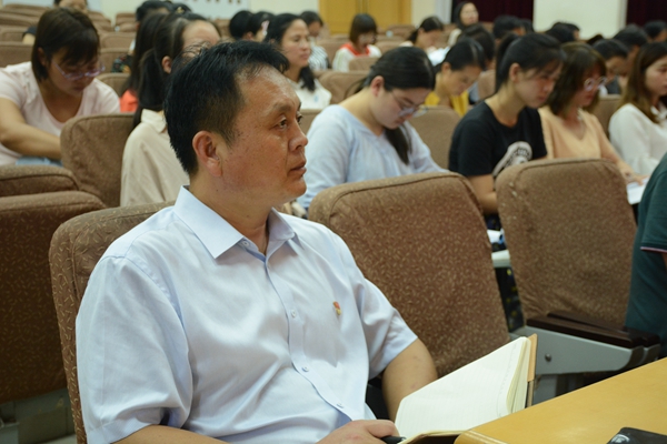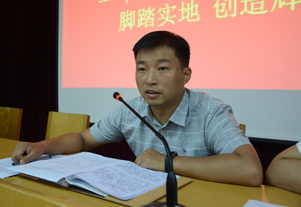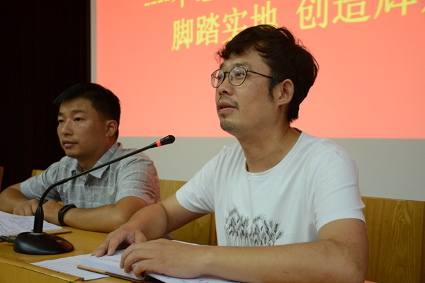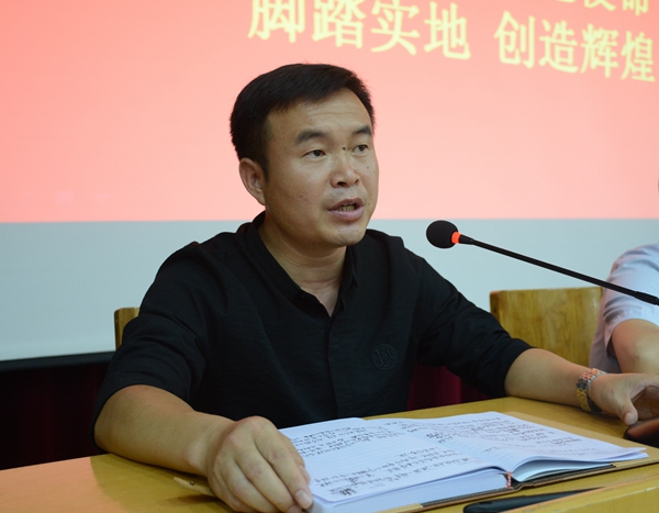 主抓教学工作的年级副主任张恒发言,从教案点评到督导组的评课,他对开学一周来的学情进行了详细的反馈;他从做好一道菜需要“备菜、做菜、上菜、反馈评价”等方面做比喻,形象地说明了一个教师需要在“备课、讲课、课下辅导以及听课学习”等方面严格要求自己、加强自身管理,确保精工出细活。