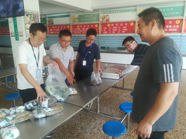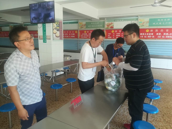 9月7日上午,区食安局侯所长一行四人来校对食堂的食材安全情况进行抽检。
