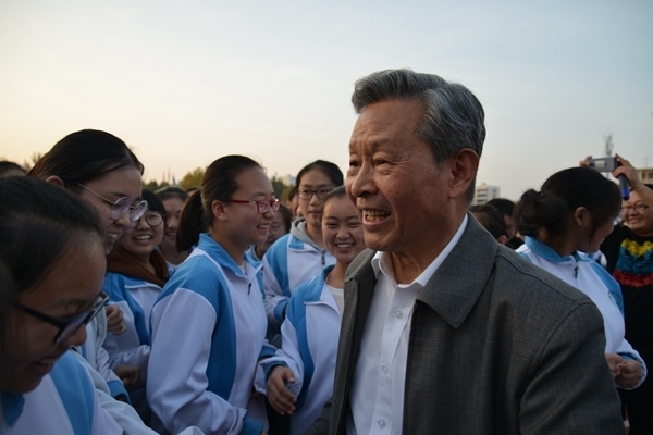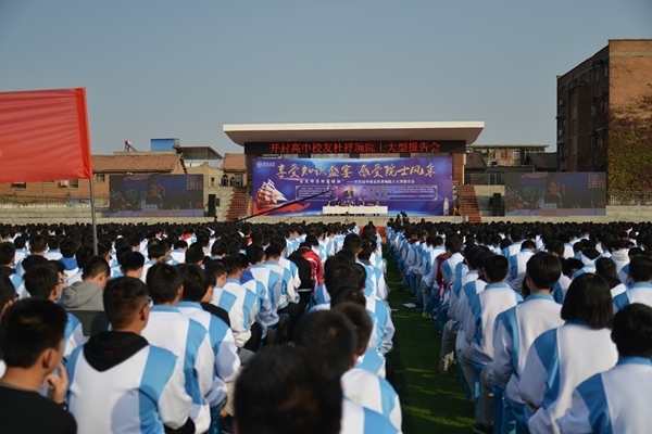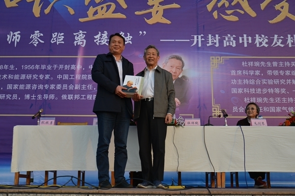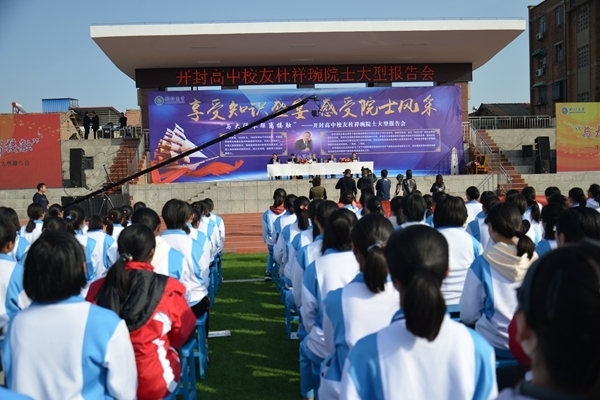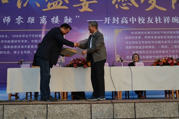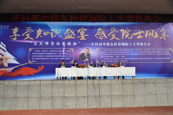 菊花飘香季,学子情高昂。10月24日下午3点整,开封高中“与大师零距离接触”大型报告会如期举行。开封高中知名校友,中国应用物理与强激光技术和能源研究专家,中国工程院院士、常务副院长杜祥琬先生和他的夫人毛剑琴教授特意回到母校,给师生带来了一场激动人心的报告。同时应邀参加活动的还有开封籍著名作家高树田先生。活动由开封高中党委书记、校长耿振勇主持。