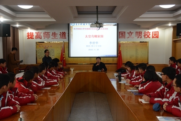 11月30日下午,电子科技大学博士生导师李世华教授到我校进行讲座。东校区管委会主任、副校长乔国颖,招生与国际交流处主任苗森予以热情接待。随后李教授为开高学子做了题为“太空鸟瞰家园”的专题讲座,为学生打开大数据时代的太空与地球空间技术的科学大门。之后李教授与学生进行了互动,进一步解答现场学生的疑问,点燃了开高学子对科技探索的热望。(审核:苗森)