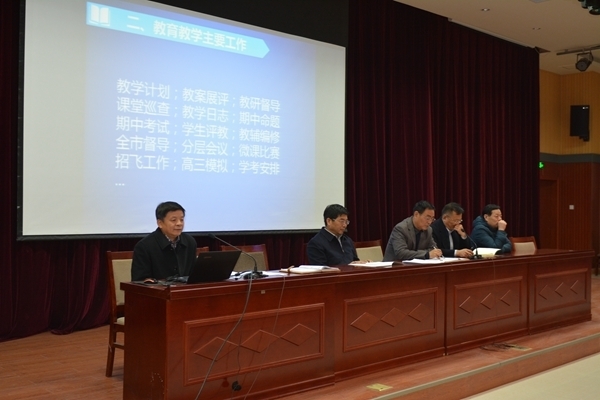 为更好总结经验,进一步提高教育教学质量,11月29日,开封高中西校区在学校报告厅召开了期中教育教学讲评会。开封高中党委副书记、副校长顾伯宇,副校长宋全会,校务委员王新国、李沛、荣海洋在主席台上就坐。会议由副校长宋全会主持,西校区全体教职工参加了会议。